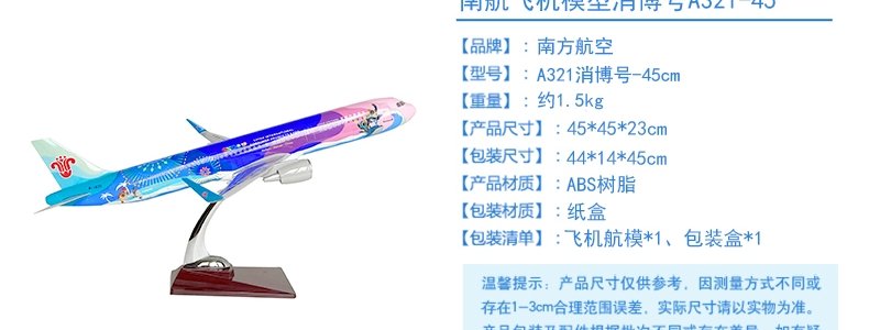 商品名称:南航文创 飞机模型消博号A321-45 -45cm