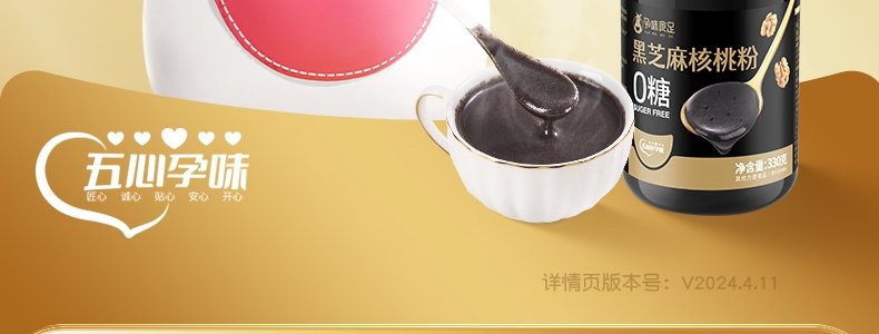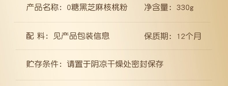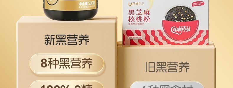 商品名称:孕味食足 黑芝麻核桃粉 0糖款 330g*2罐