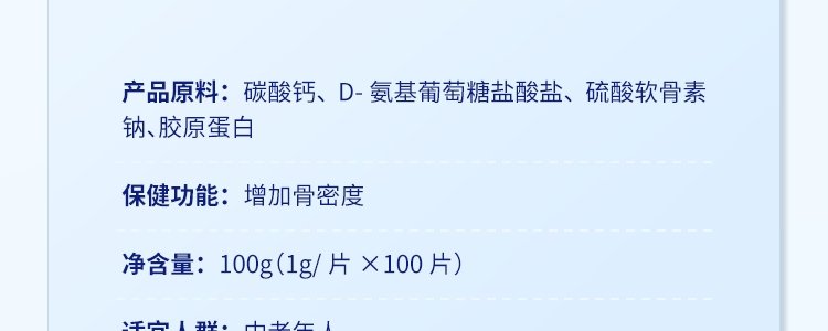 商品名称:【箱装】澳新康 氨糖软骨素钙片 100片*72盒