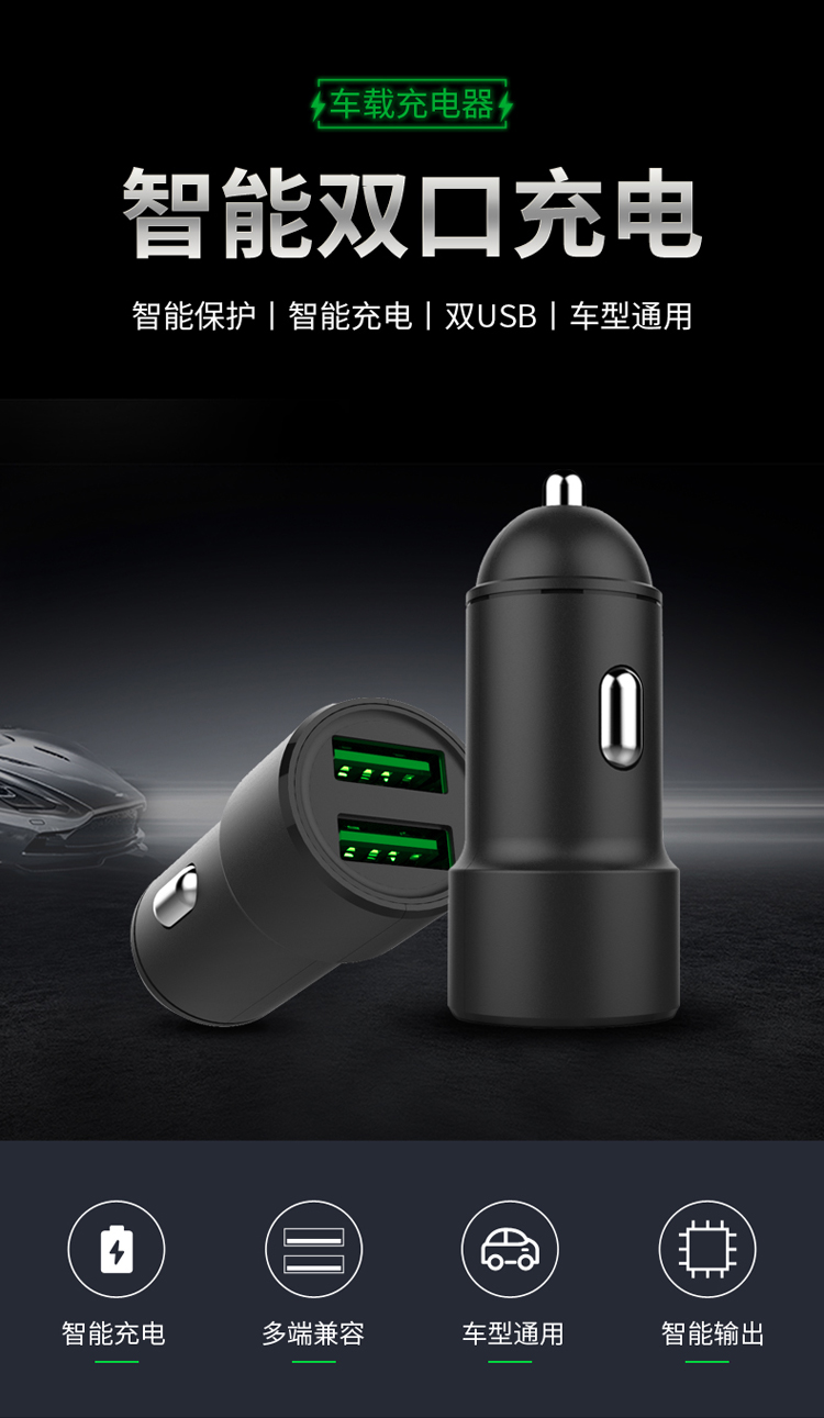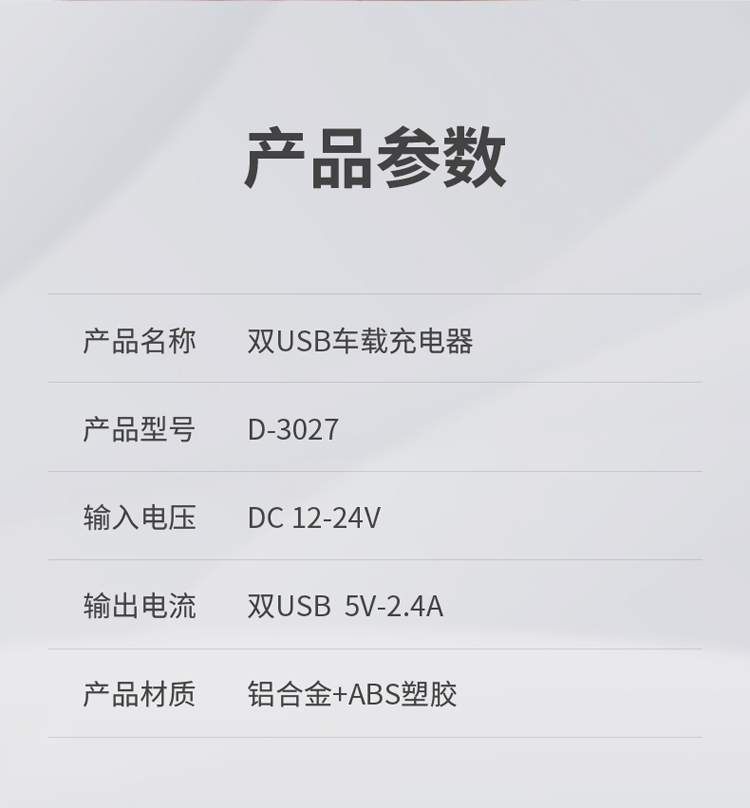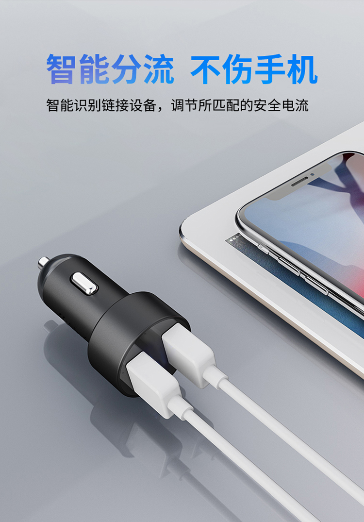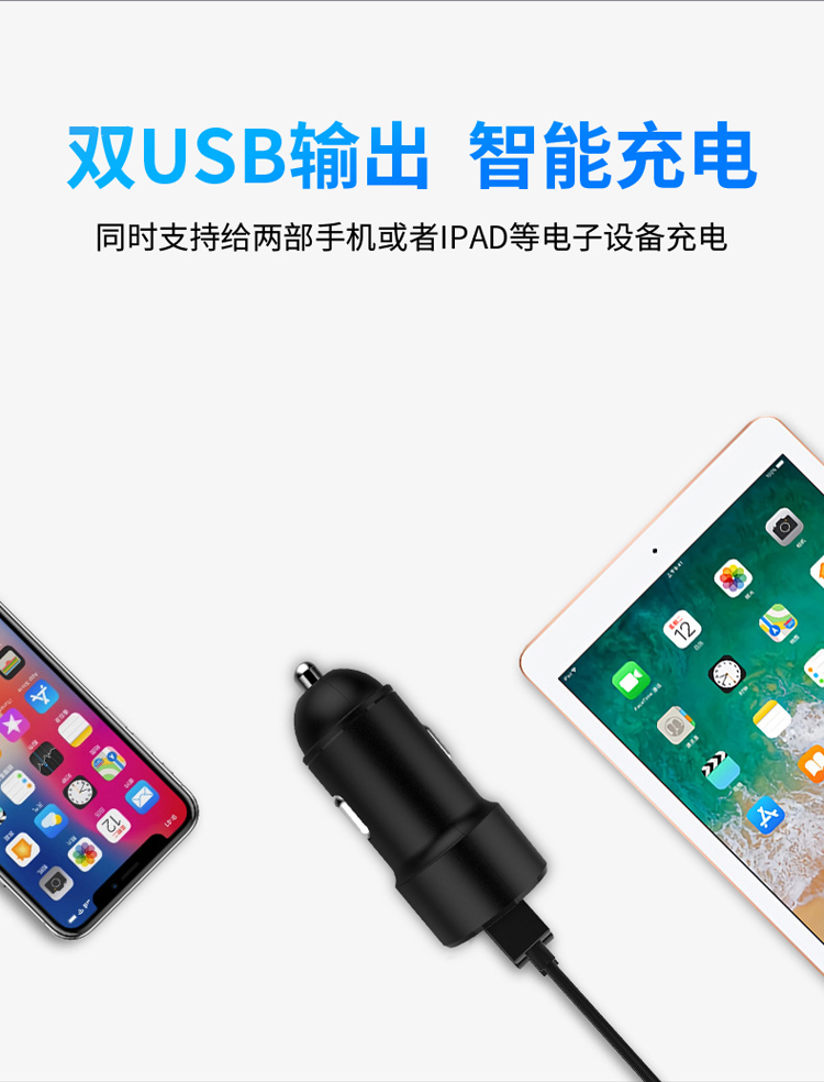 商品名称:ICAROOM/爱车屋双USB车载充电器D-3027