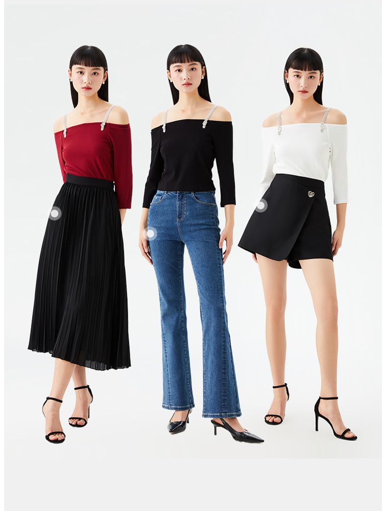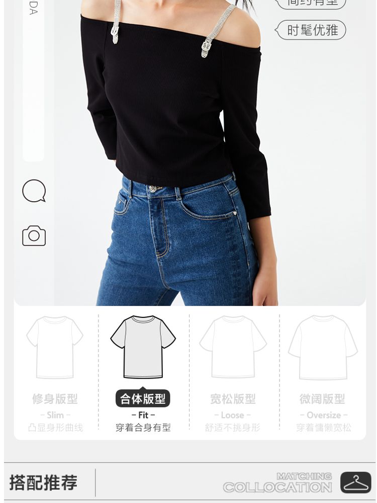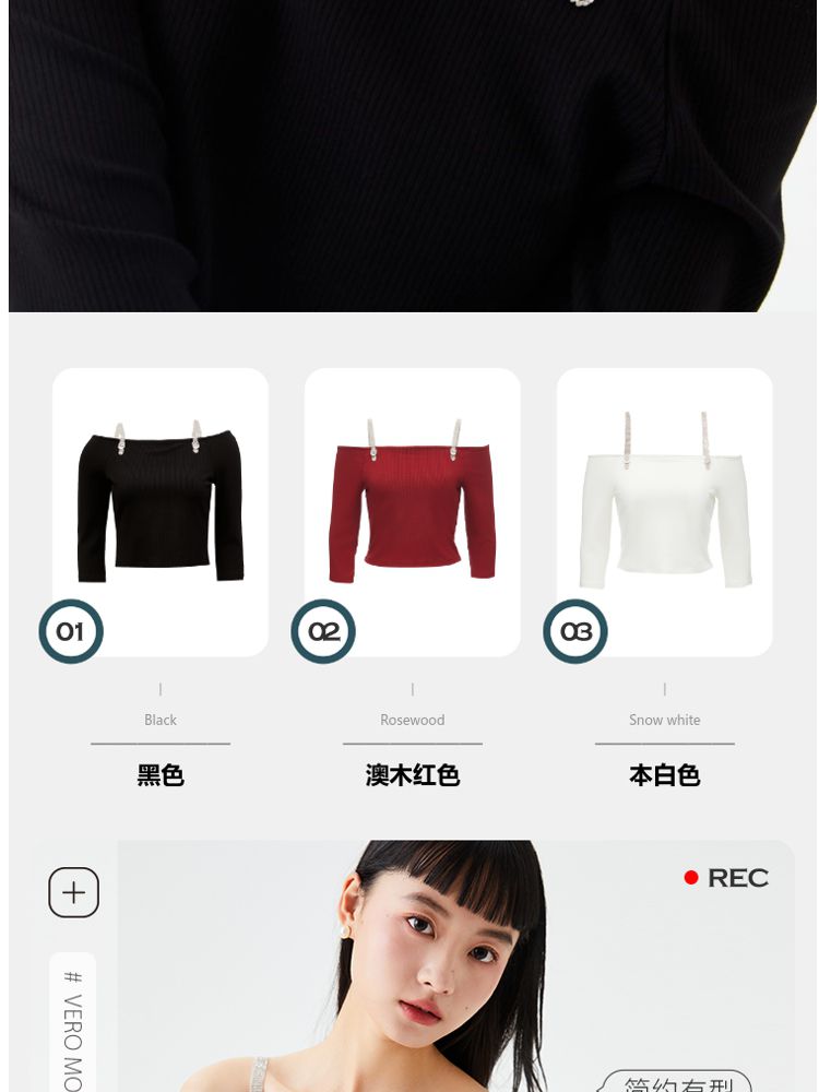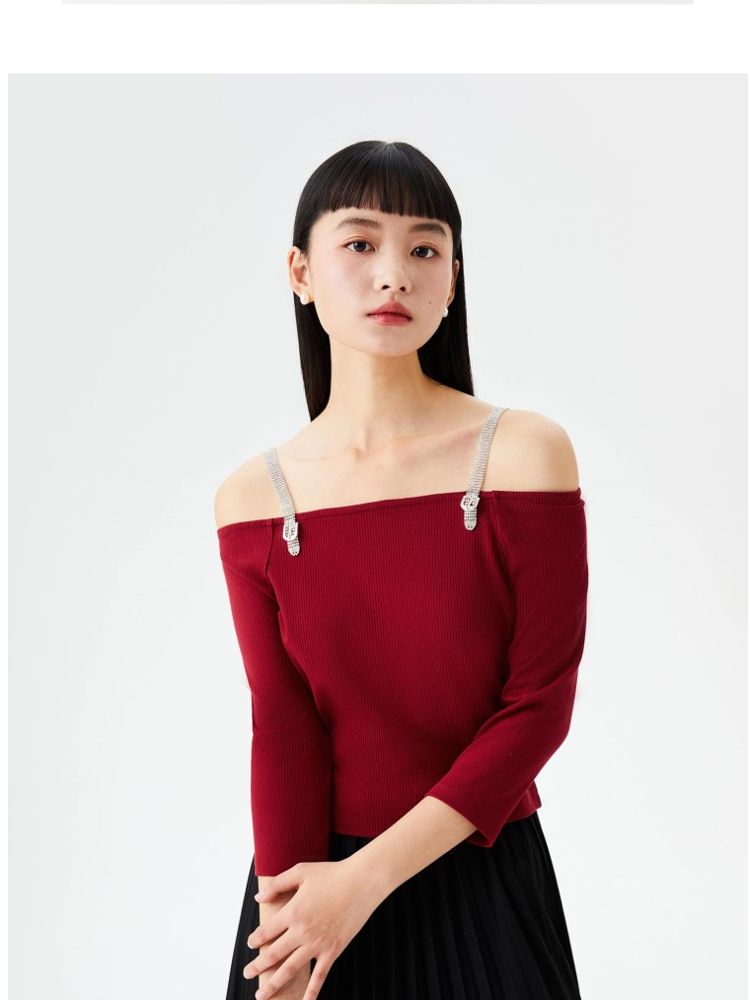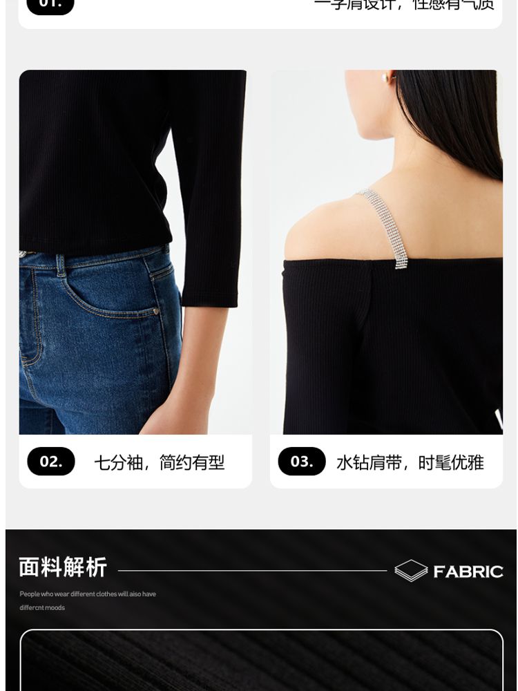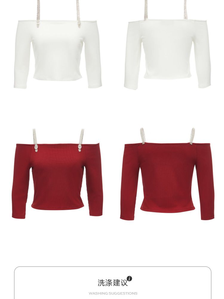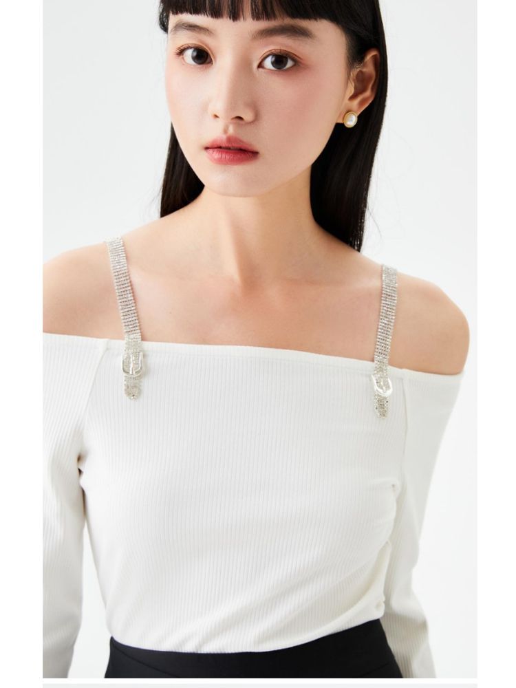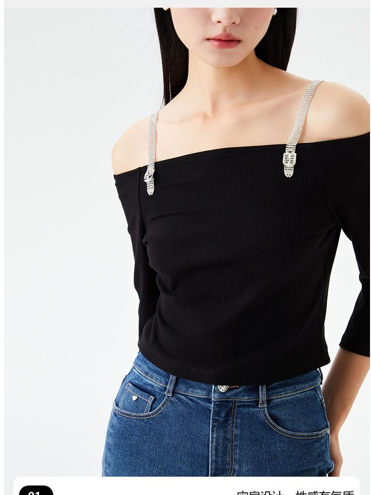 商品名称:【专柜同款】春夏一字肩水钻吊带优雅T恤女气质百搭时尚 817233