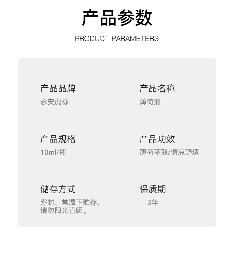 商品名称:TIGER DART/永安虎标薄荷油10ml