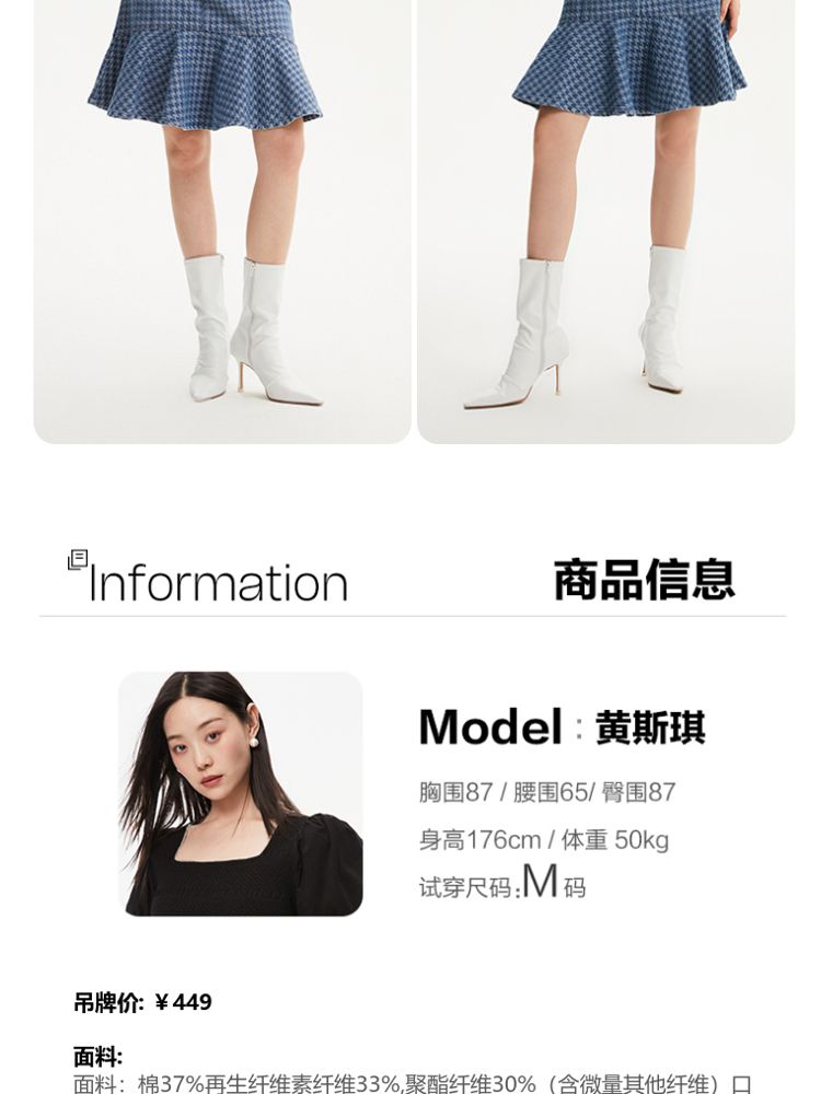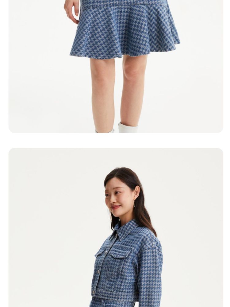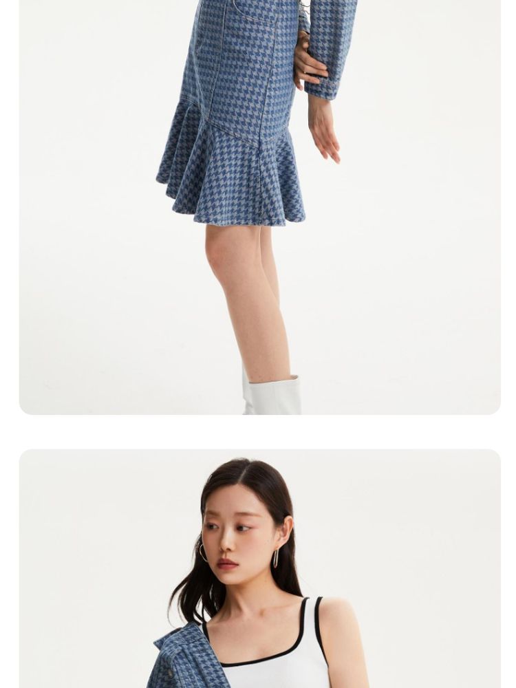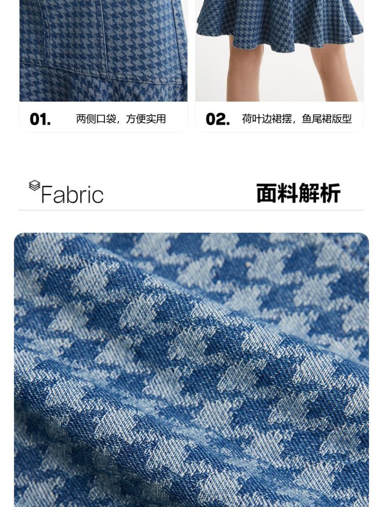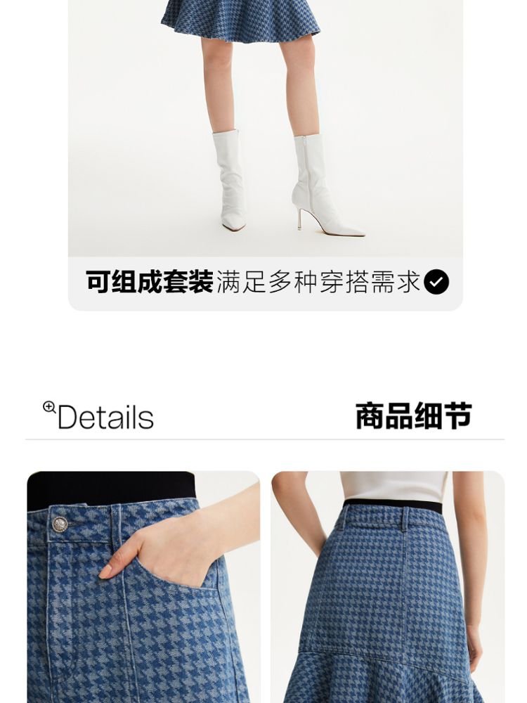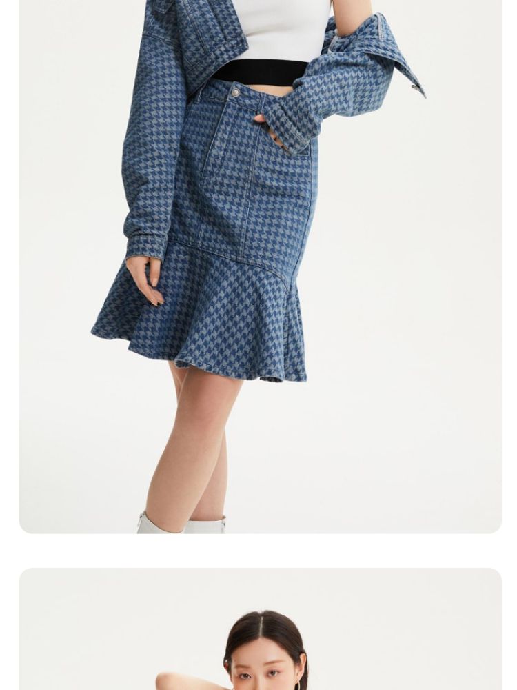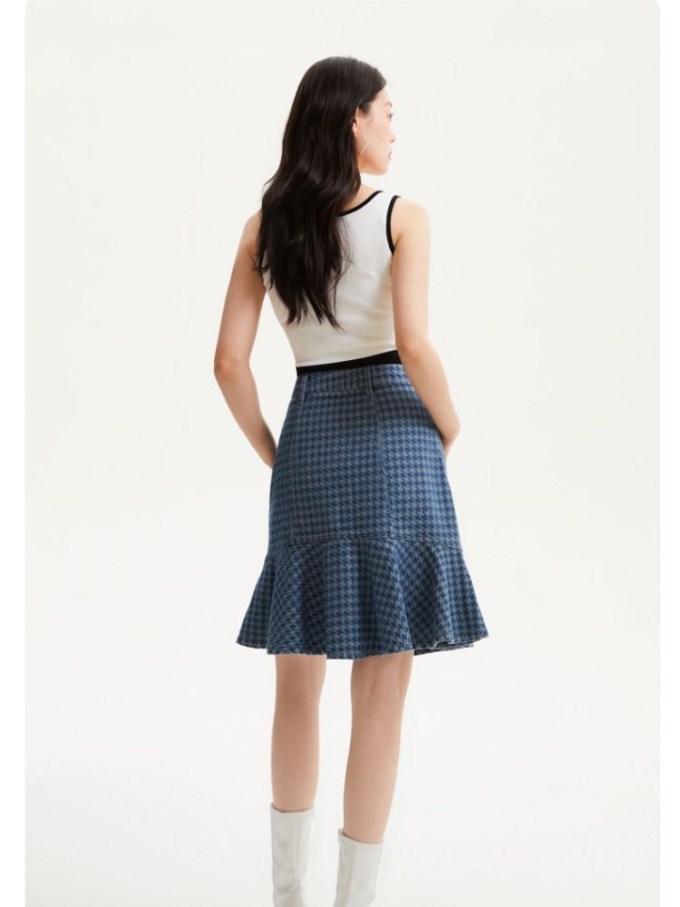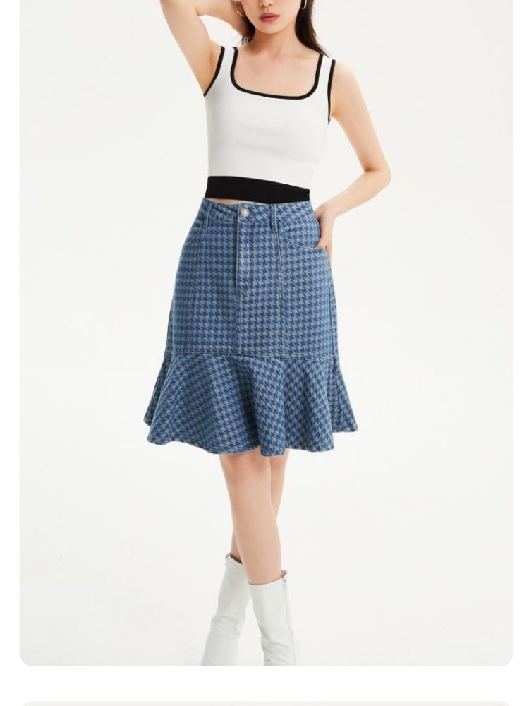 商品名称:【千鸟格印花鱼尾裙】春夏款高腰复古时髦牛仔半身裙气质百搭时尚 989905