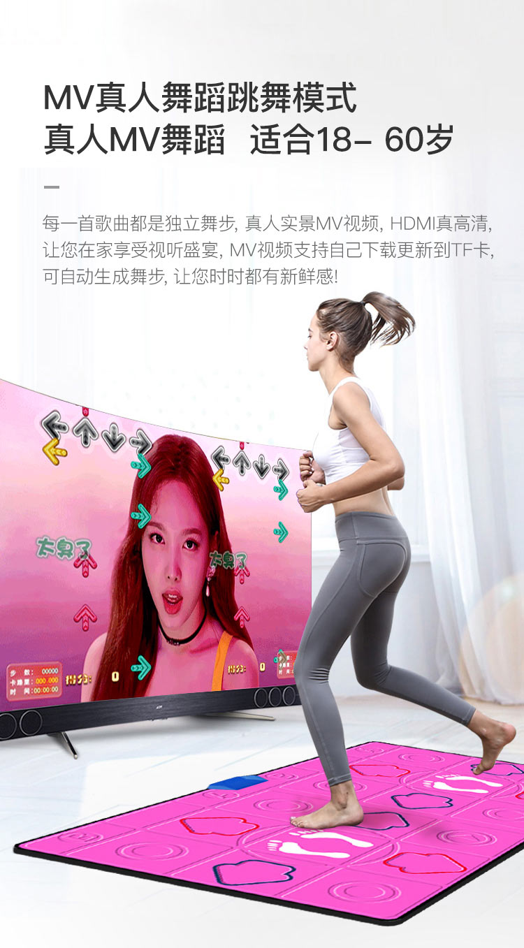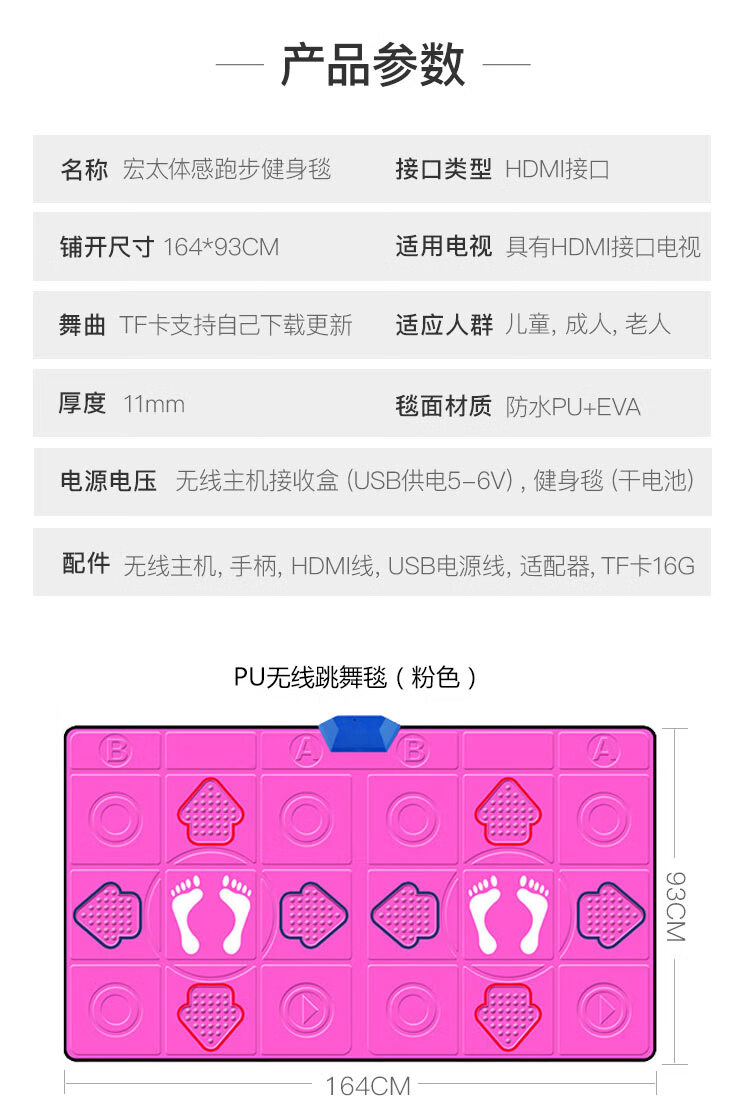商品名称:HTASK/宏太双人PU无线体感跑步跳舞毯HT-06DM-PWF-粉色