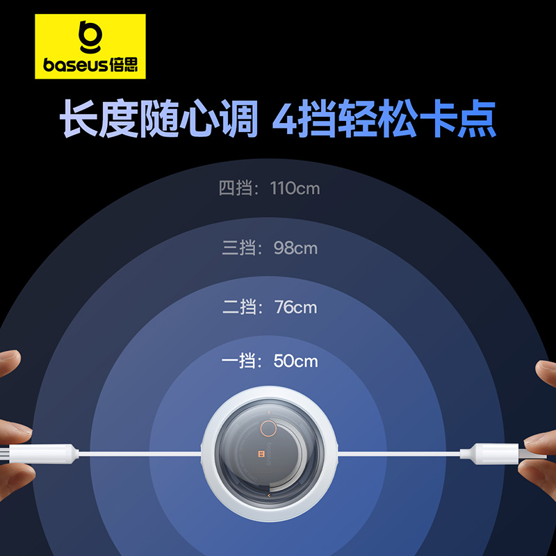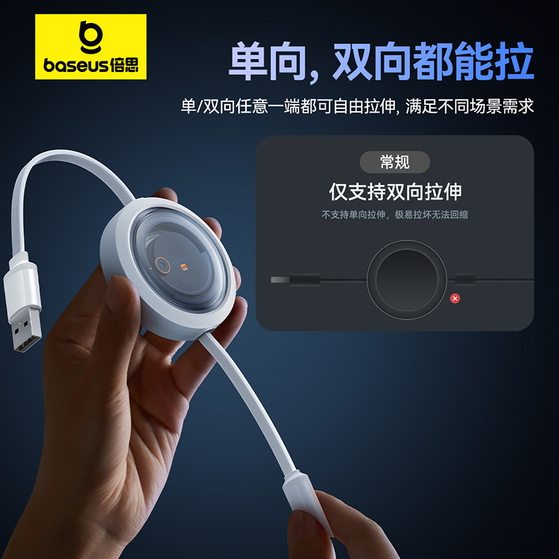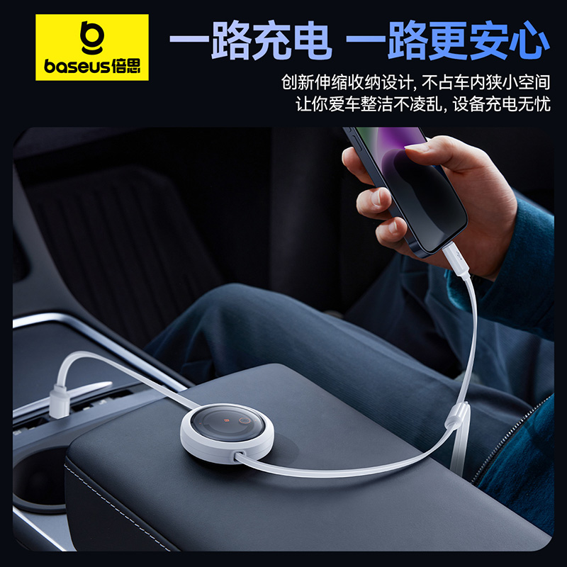 商品名称:Baseus/倍思酷睿系列随意拉伸快充数据线-皓月白USB to M+L+C 3.5A