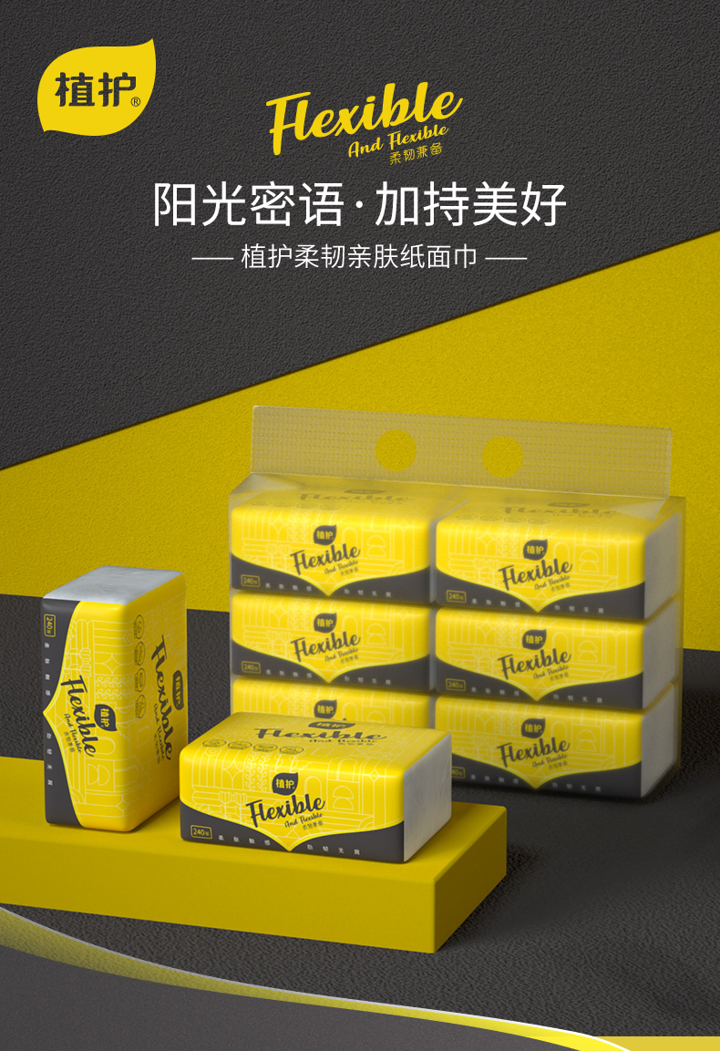 植护阳光心情柔韧纸面巾4层60抽*6包*4提