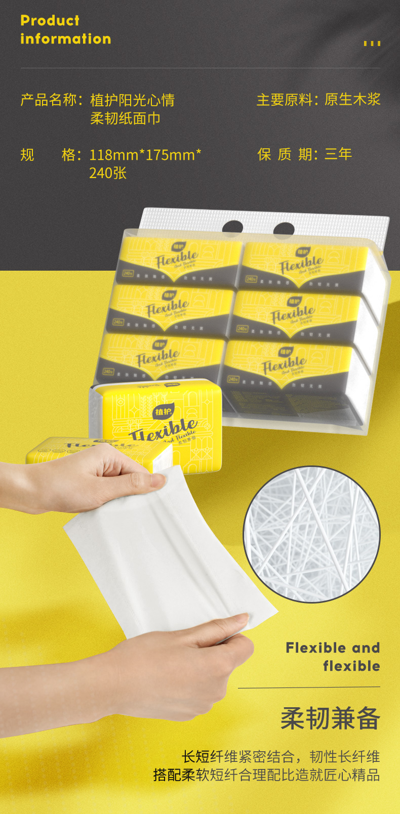 商品名称:植护阳光心情柔韧纸面巾4层60抽*6包*4提