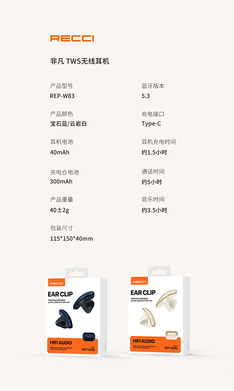 商品名称:Recci/锐思非凡TWS无线耳机REP-W83