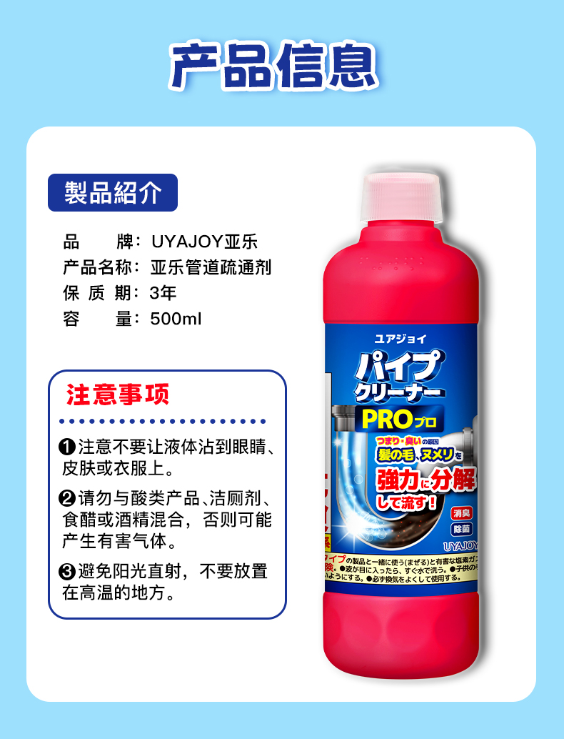 商品名称:UYAJOY/亚乐管道疏通剂500ml YL002