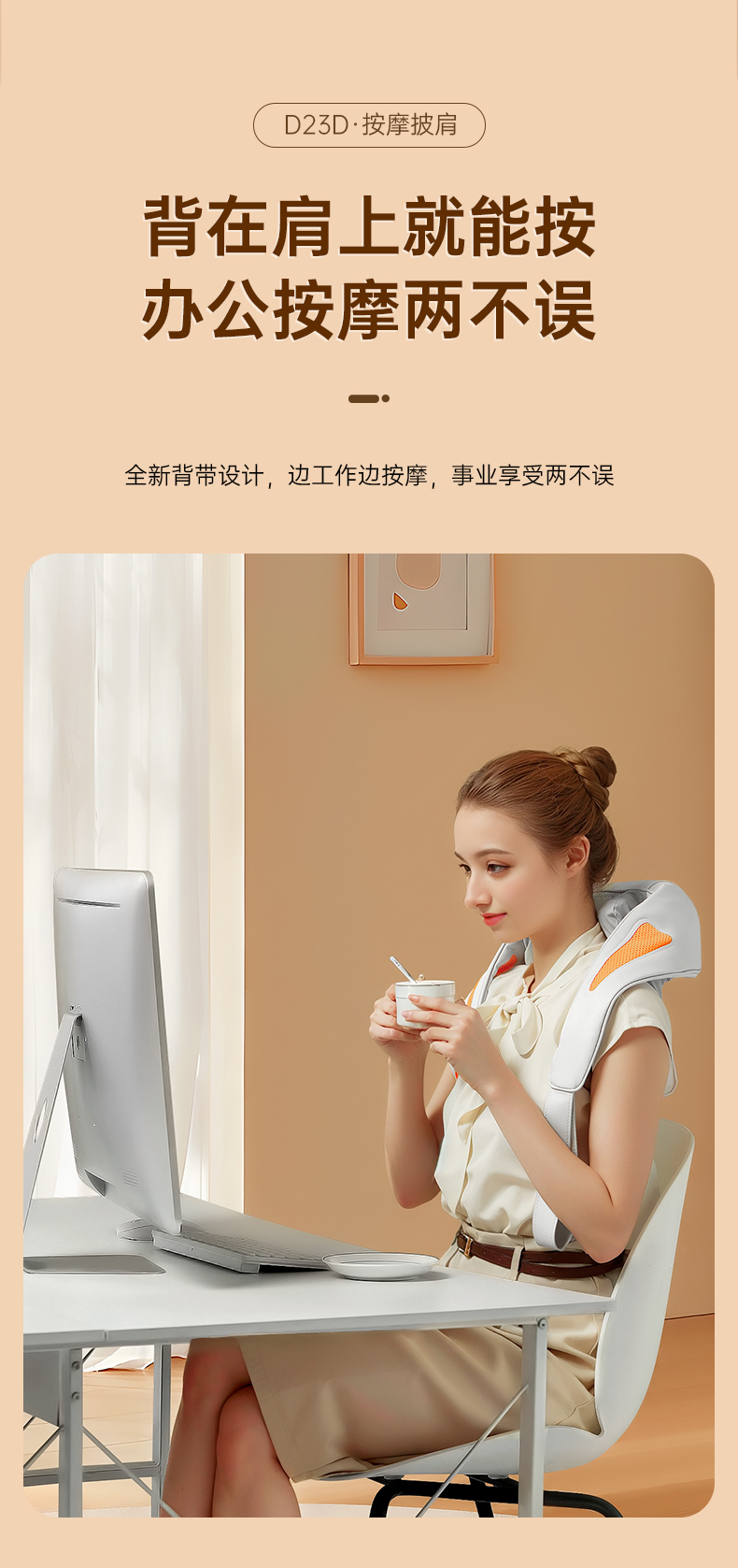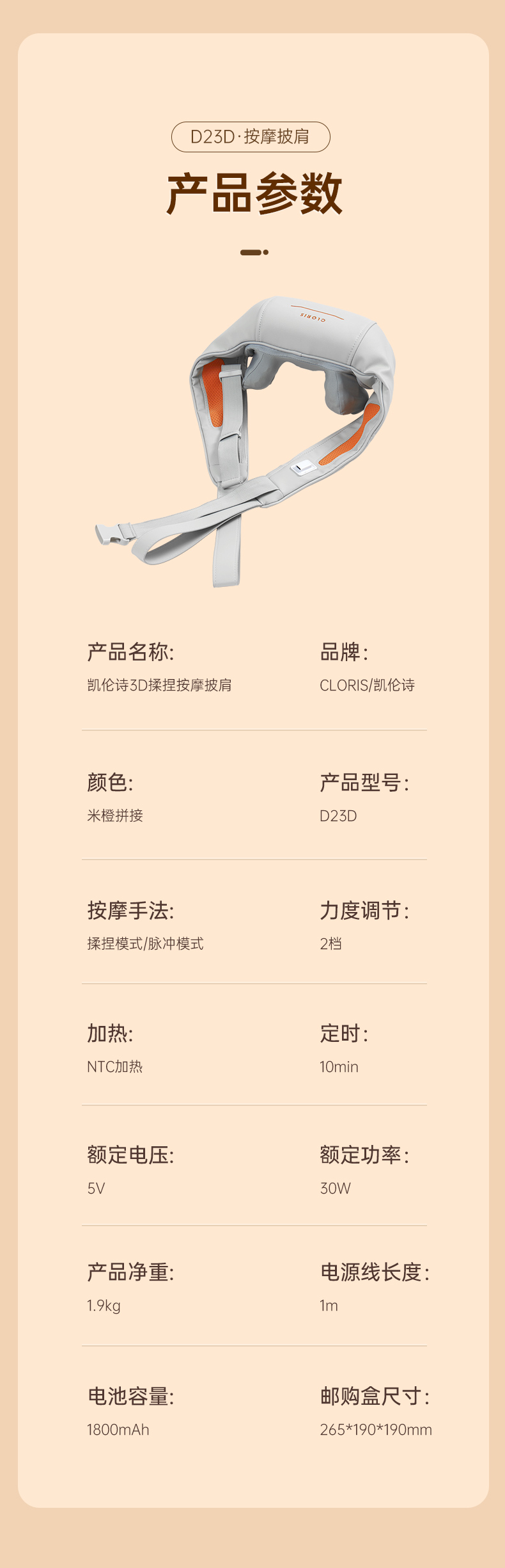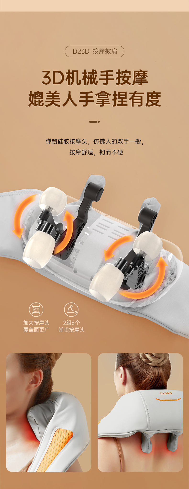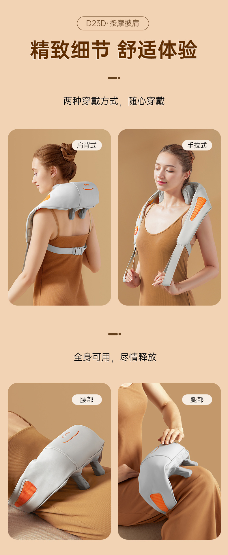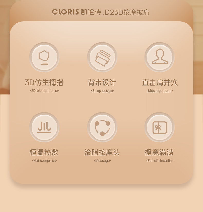 商品名称:CIORIS/凯伦诗3D揉捏按摩披肩-米橙拼接D23D
