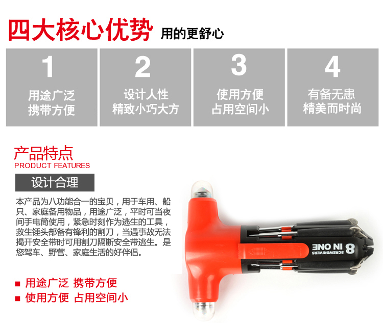 商品名称:ICAROOM/爱车屋多功能车用救生锤I-6002
