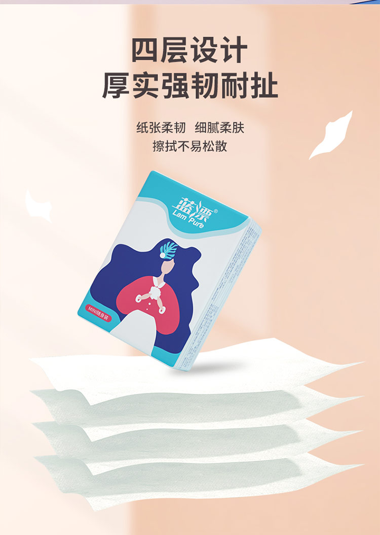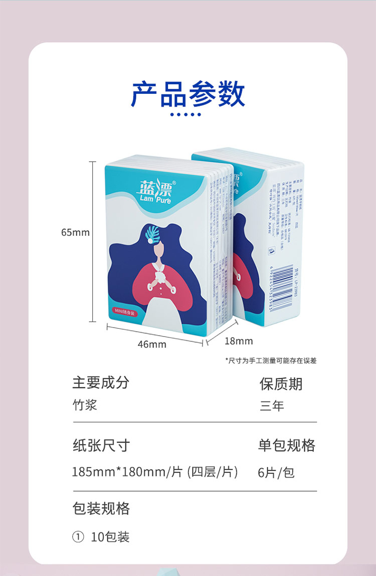 商品名称:Lam pure/蓝漂亲肤手帕纸4层6片*10包*6条 LP-24003