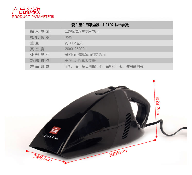 商品名称:ICAROOM/爱车屋车用吸尘器I-2102