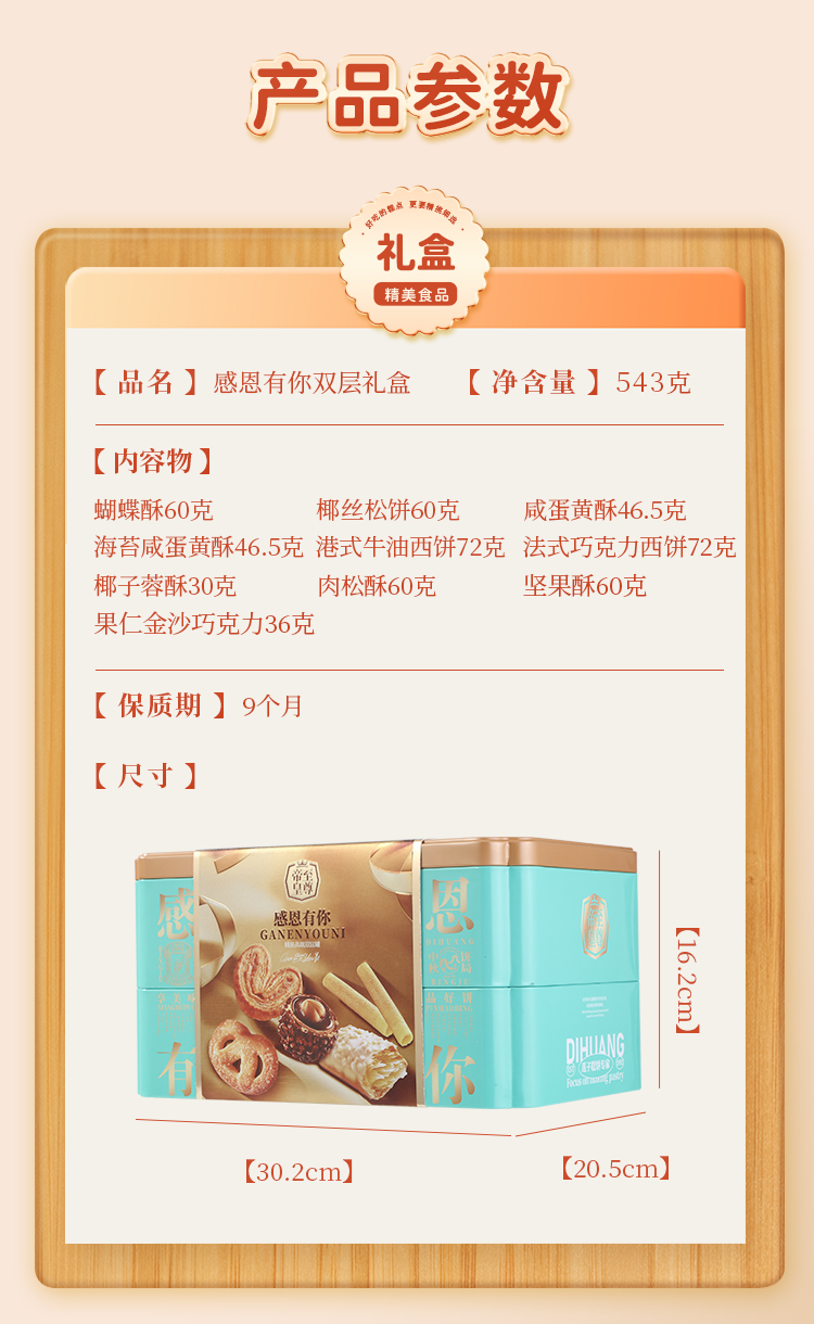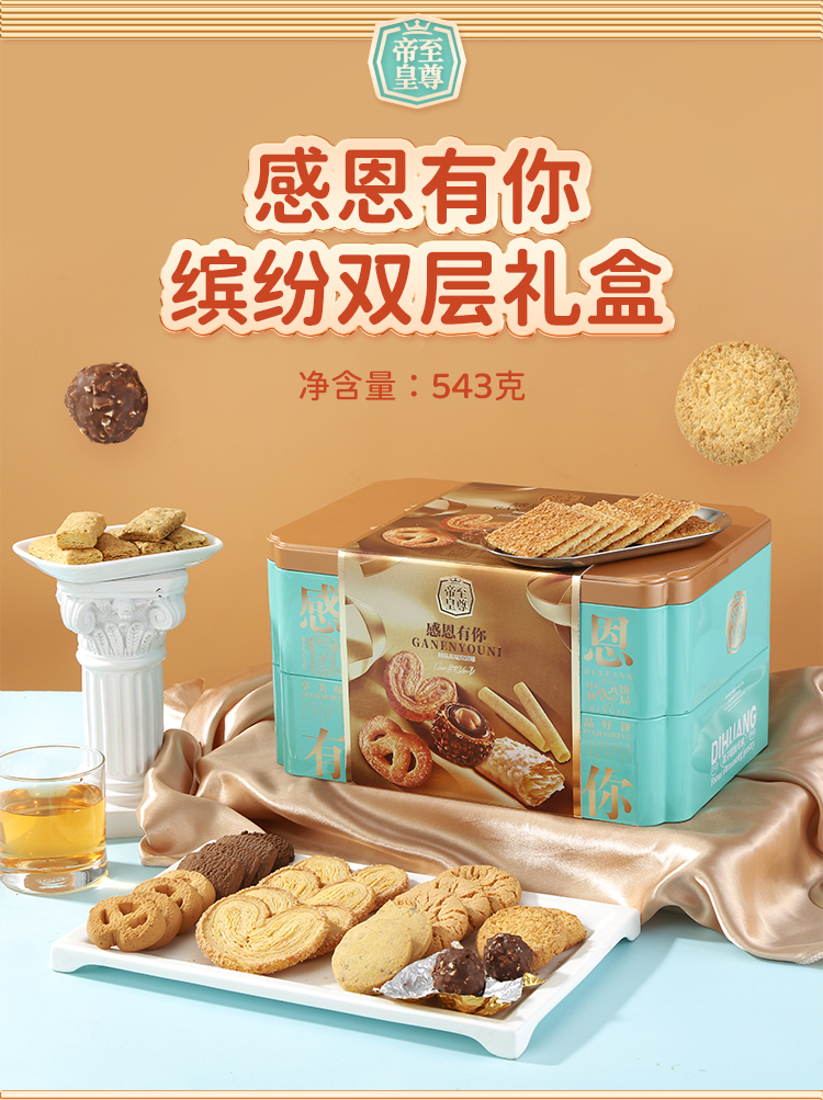 商品名称:至尊帝皇感恩有你双层糕点礼盒543g