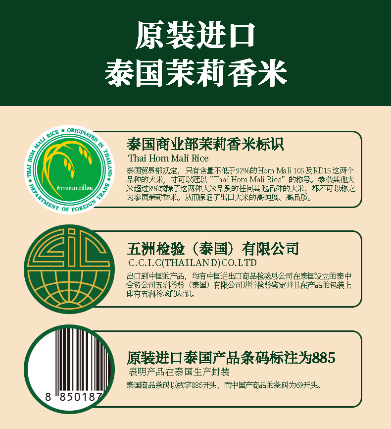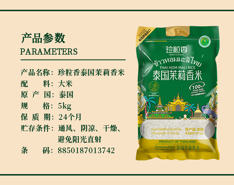 商品名称:珍粒香泰国茉莉香米绿标款5kg