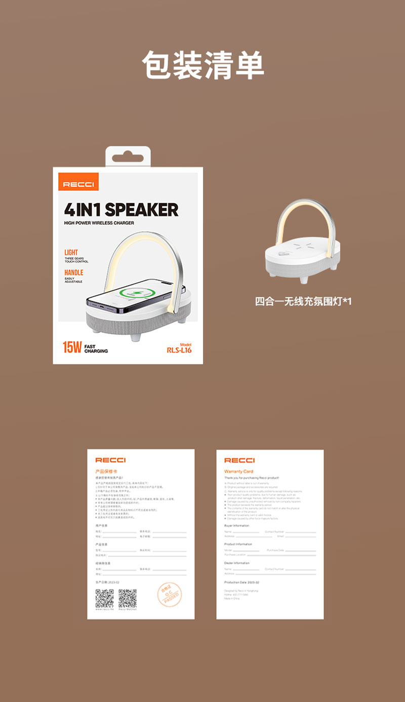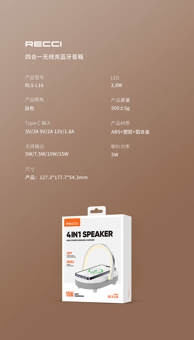 商品名称:Recci/锐思15W四合一无线充蓝牙音箱RLS-L16