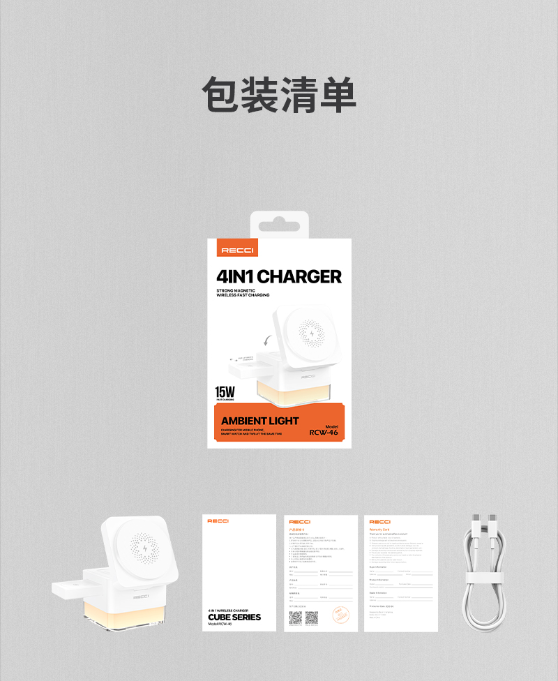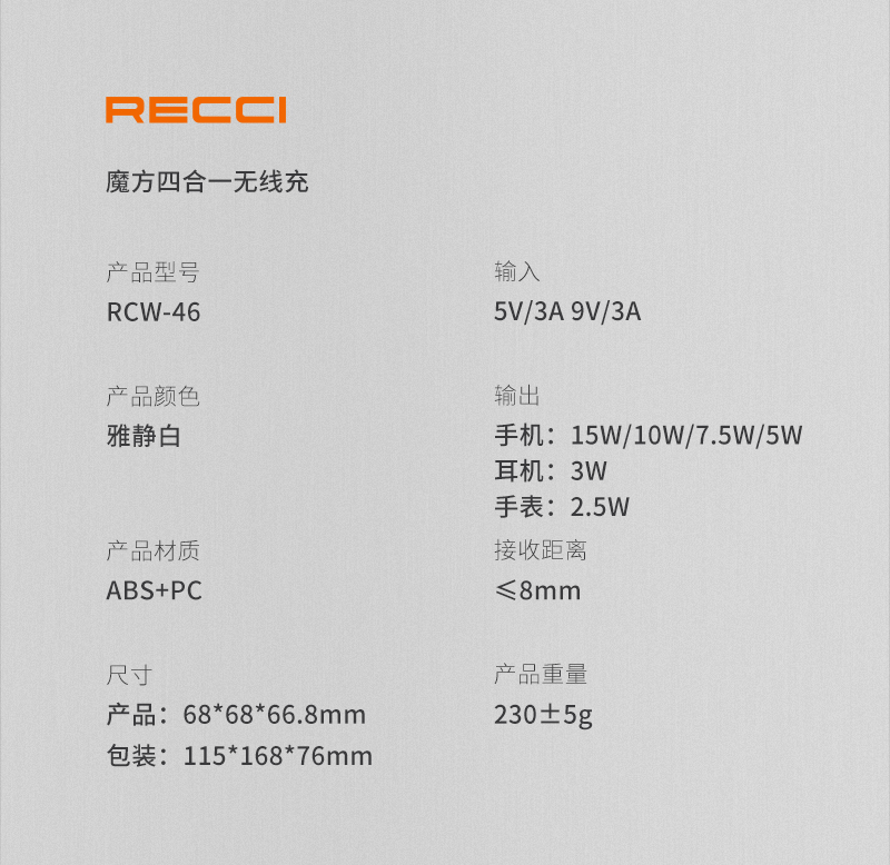 商品名称:Recci/锐思15W磁吸魔方四合一无线充RCW-46