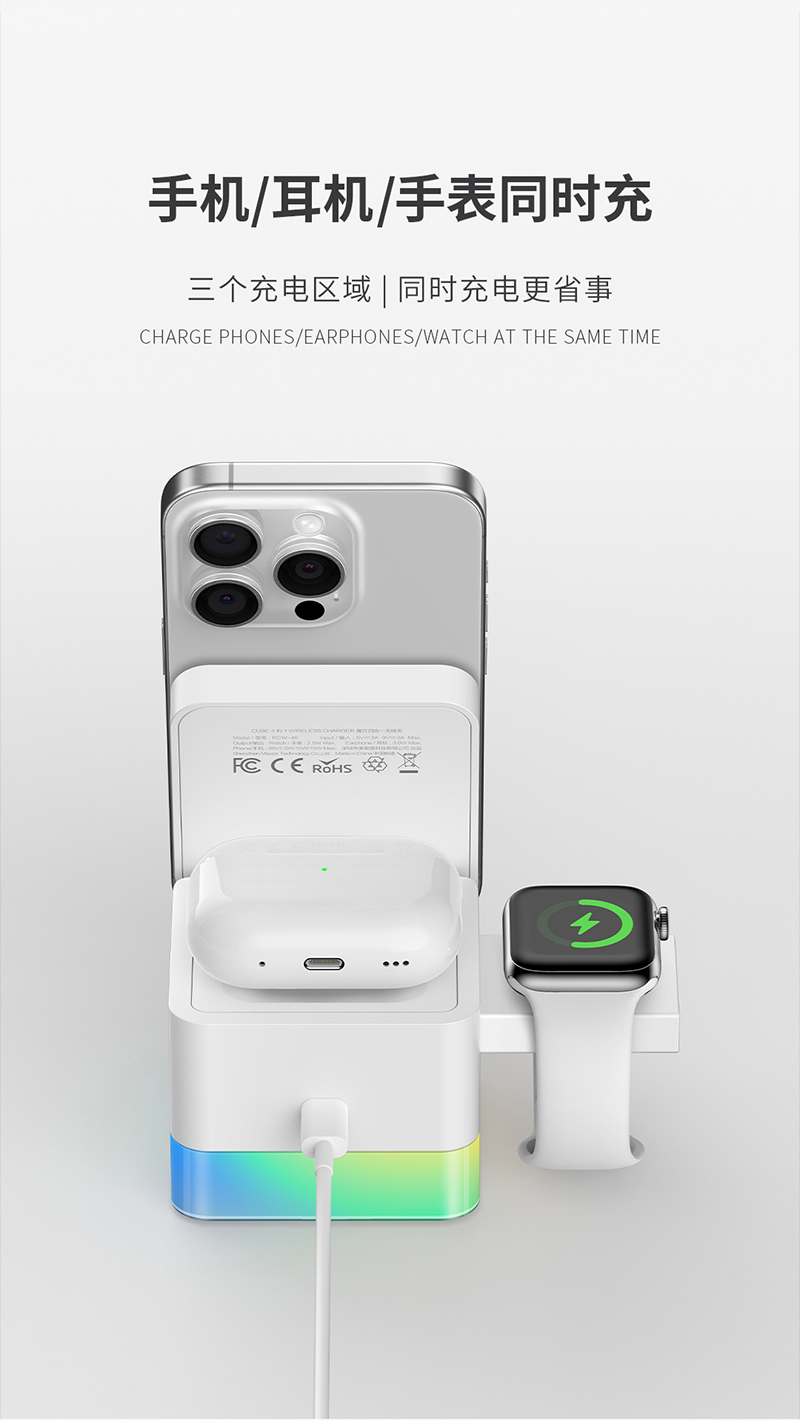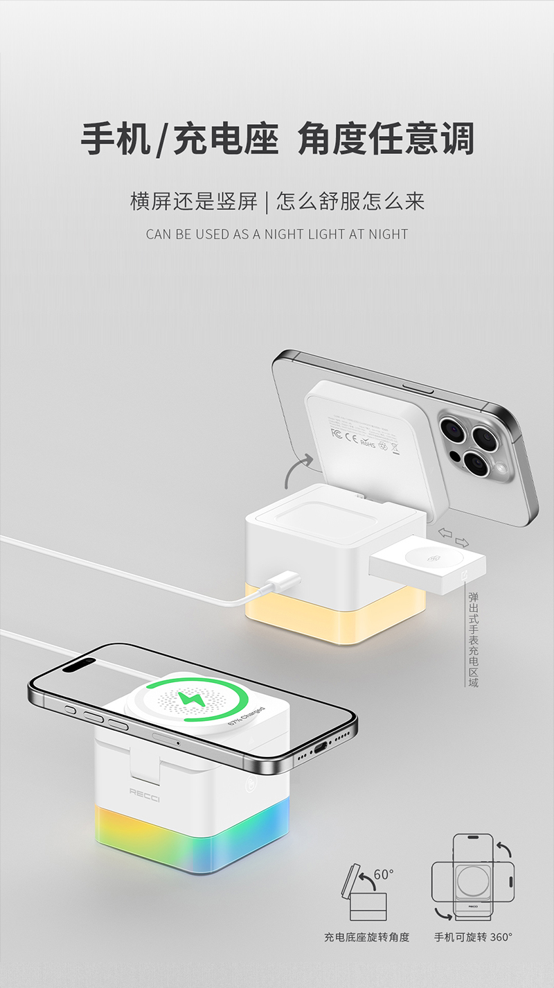 Recci/锐思15W磁吸魔方四合一无线充RCW-46