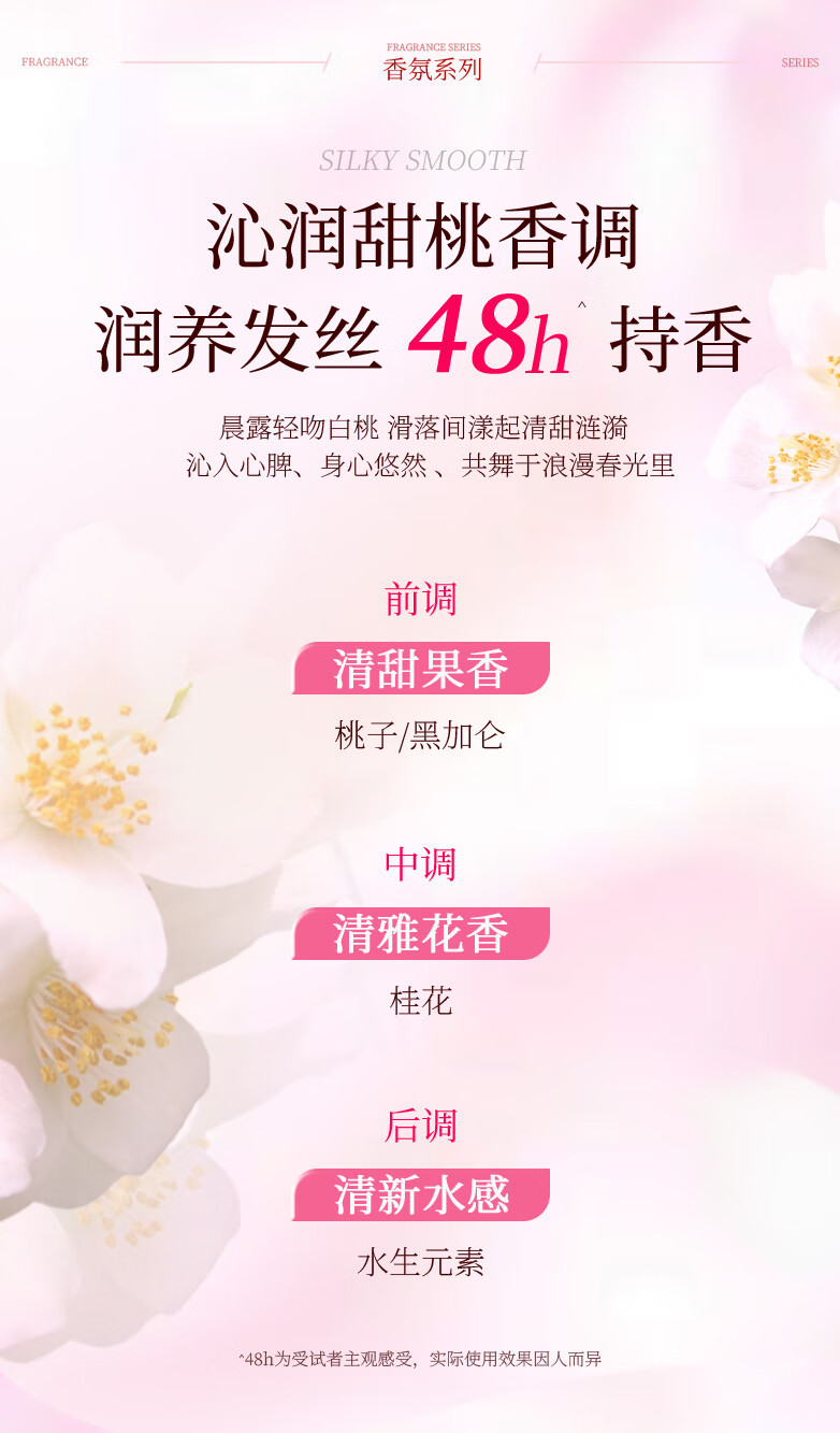 商品名称:蝶印甜心白桃味水润丝滑洗发露500ml
