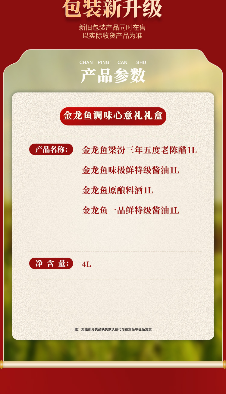 商品名称:金龙鱼调味心意礼调料礼盒4L