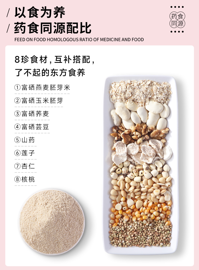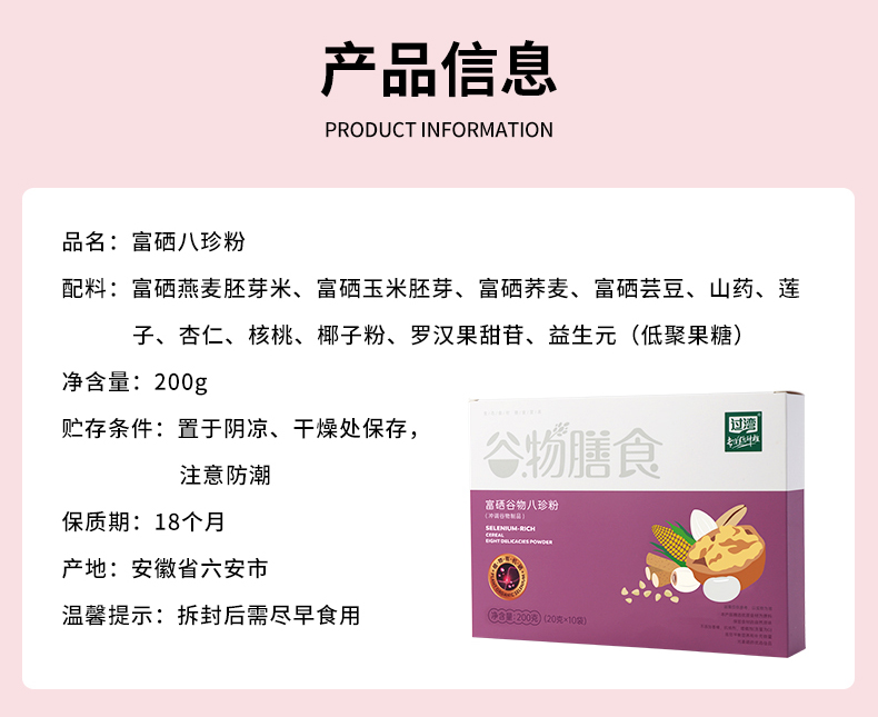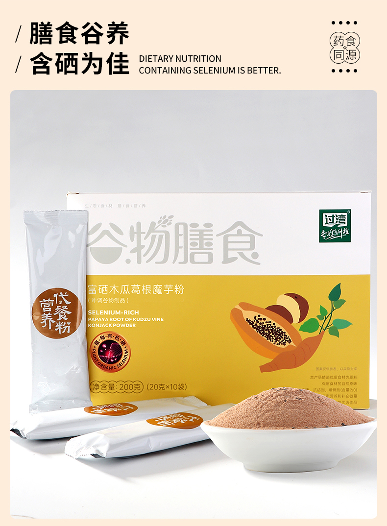 商品名称:过湾富硒谷物八珍粉200g+富硒木瓜葛根魔芋粉200g