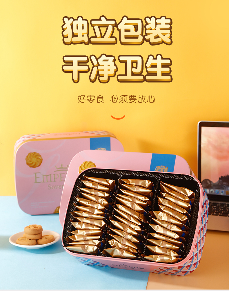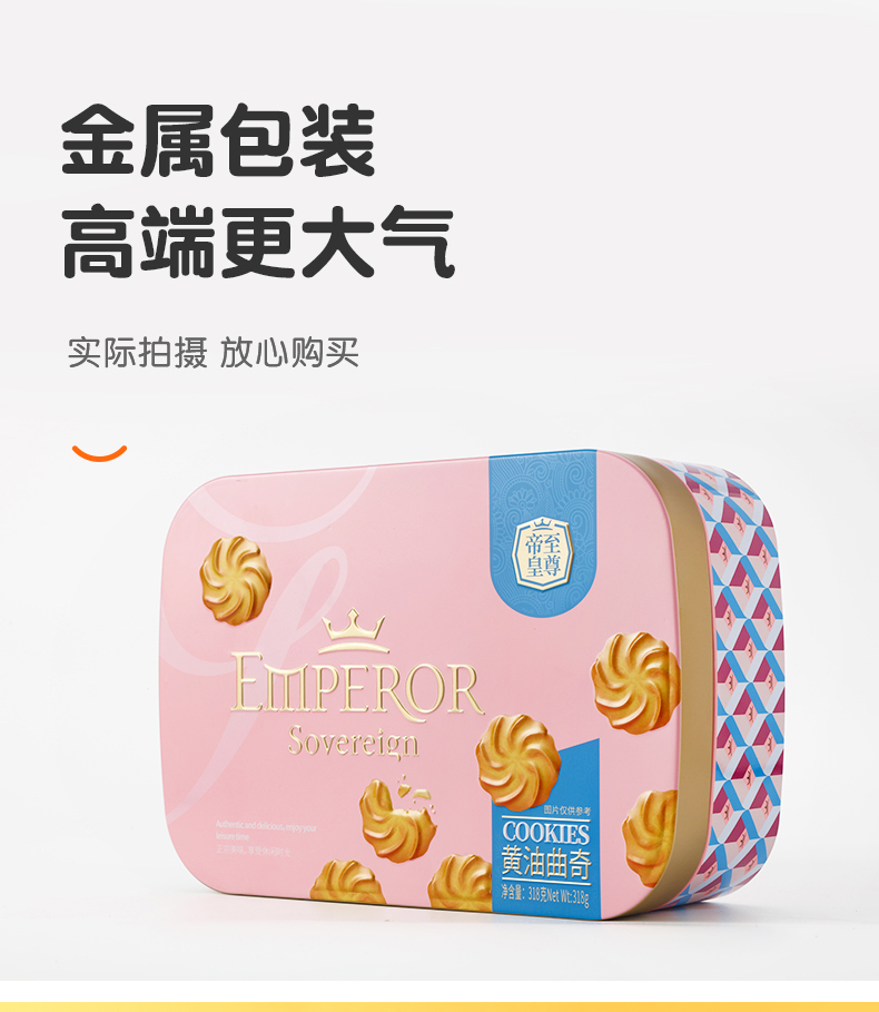 商品名称:至尊帝皇黄油曲奇饼干铁罐装318g