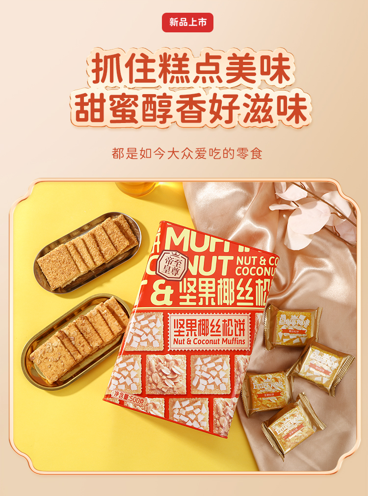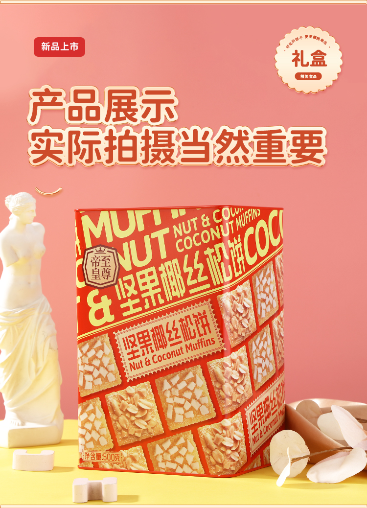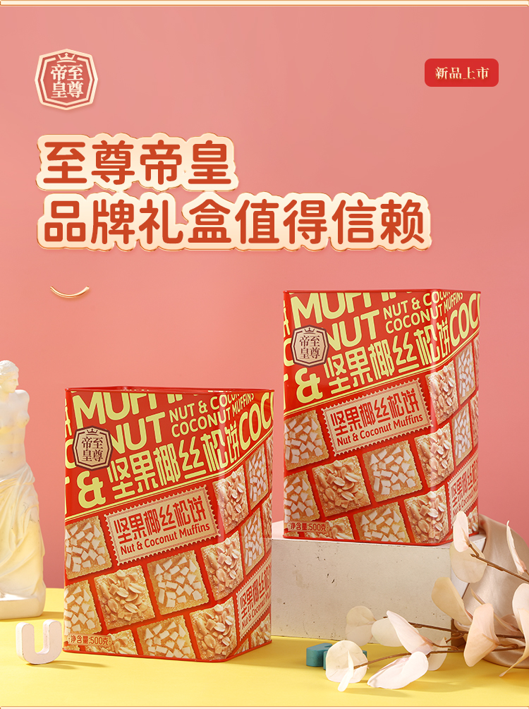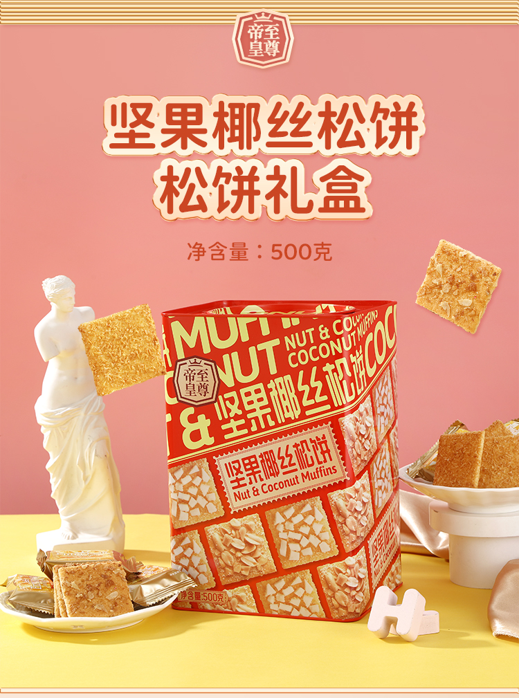 商品名称:至尊帝皇坚果椰丝松饼礼盒500g