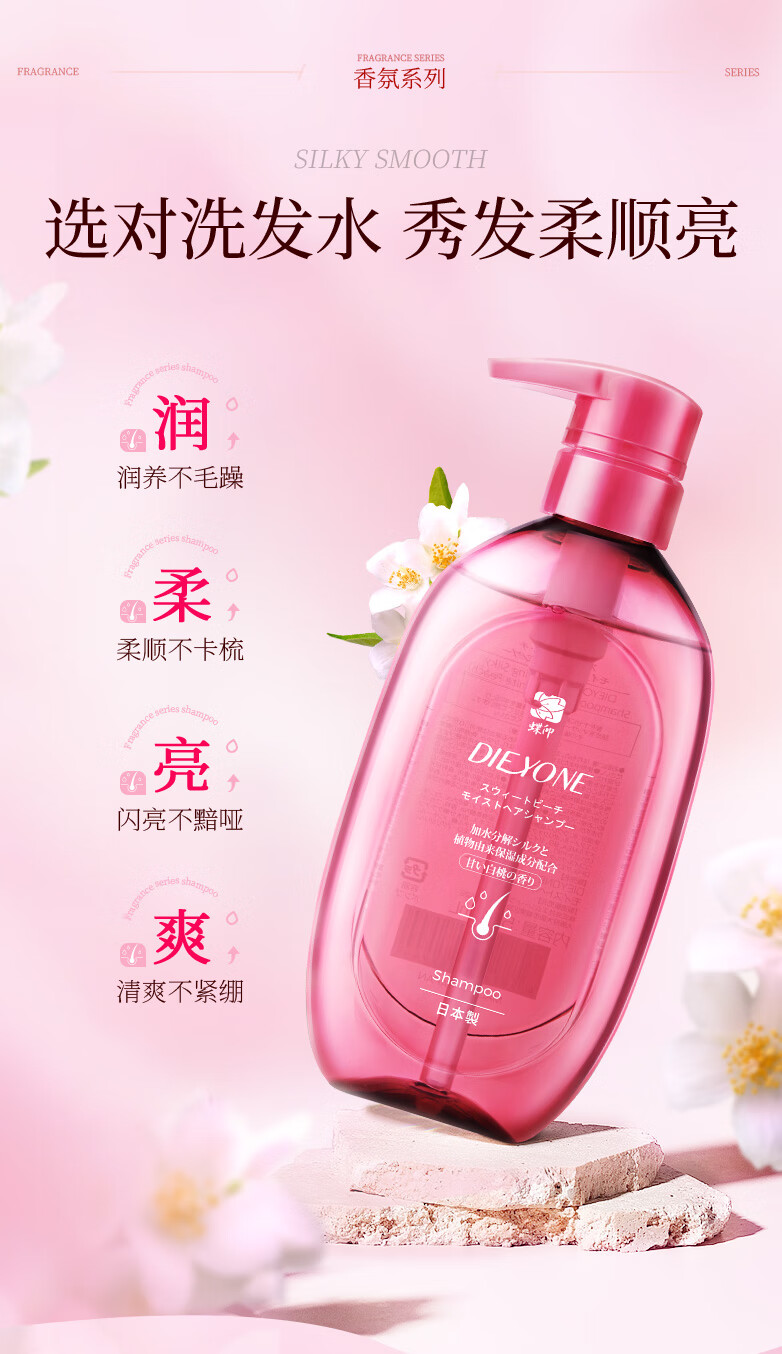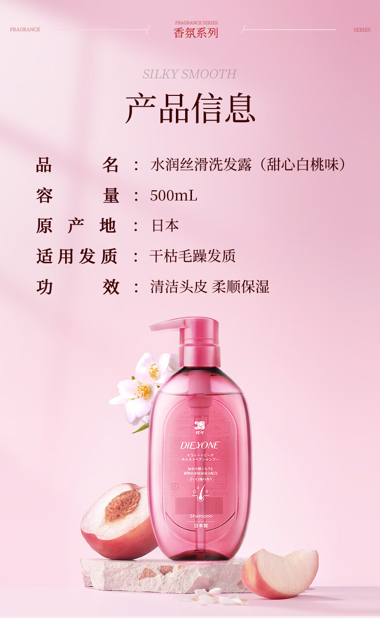 商品名称:蝶印甜心白桃味水润丝滑沐浴露500ml+洗发露500ml