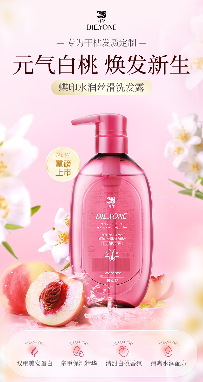 蝶印甜心白桃味水润丝滑沐浴露500ml+洗发露500ml