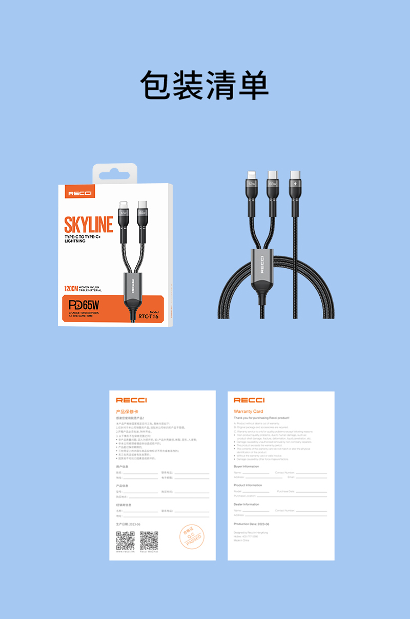 商品名称:Recci/锐思星辉二合一快充数据线RTC-T16