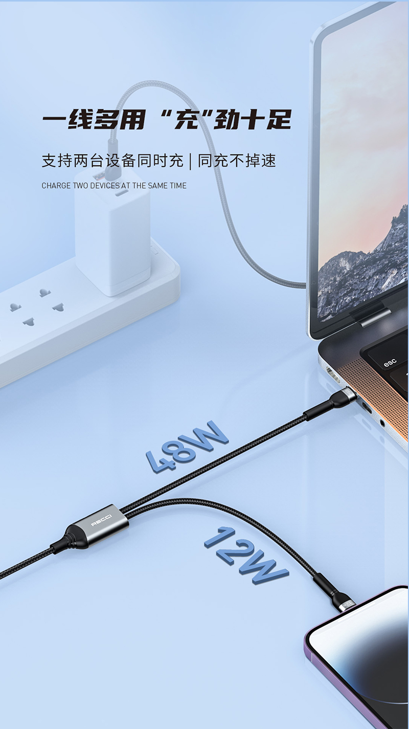 Recci/锐思星辉二合一快充数据线RTC-T16