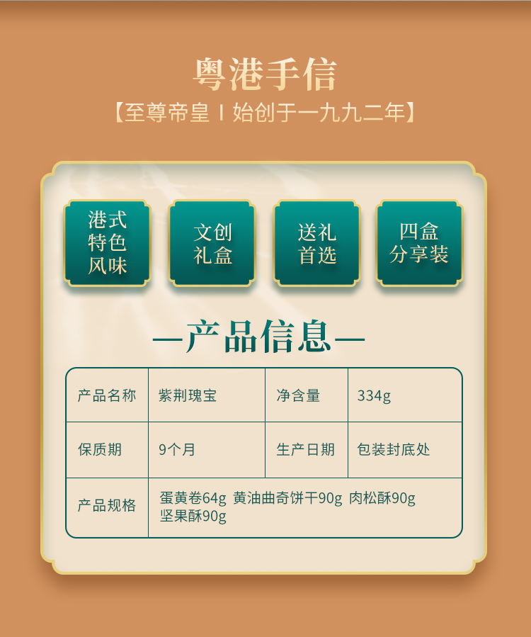 商品名称:至尊帝皇紫荆瑰宝粤港手信糕点礼盒334g