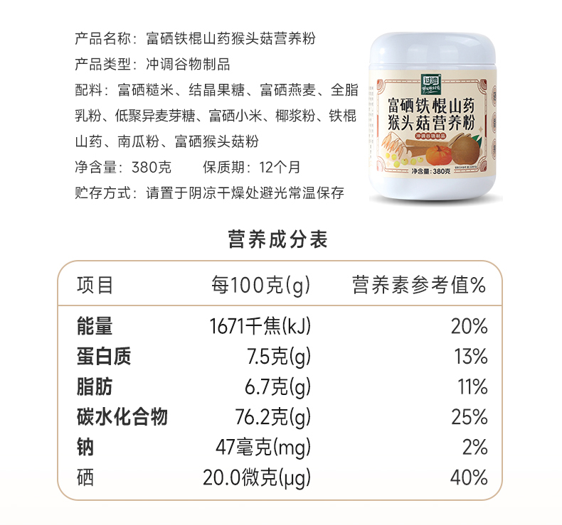商品名称:过湾富硒铁棍山药猴头菇营养粉380g