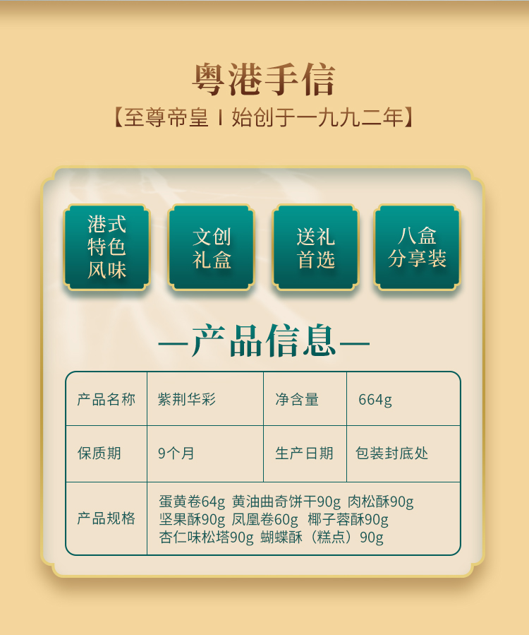 商品名称:至尊帝皇紫荆华彩粤港手信糕点礼盒664g