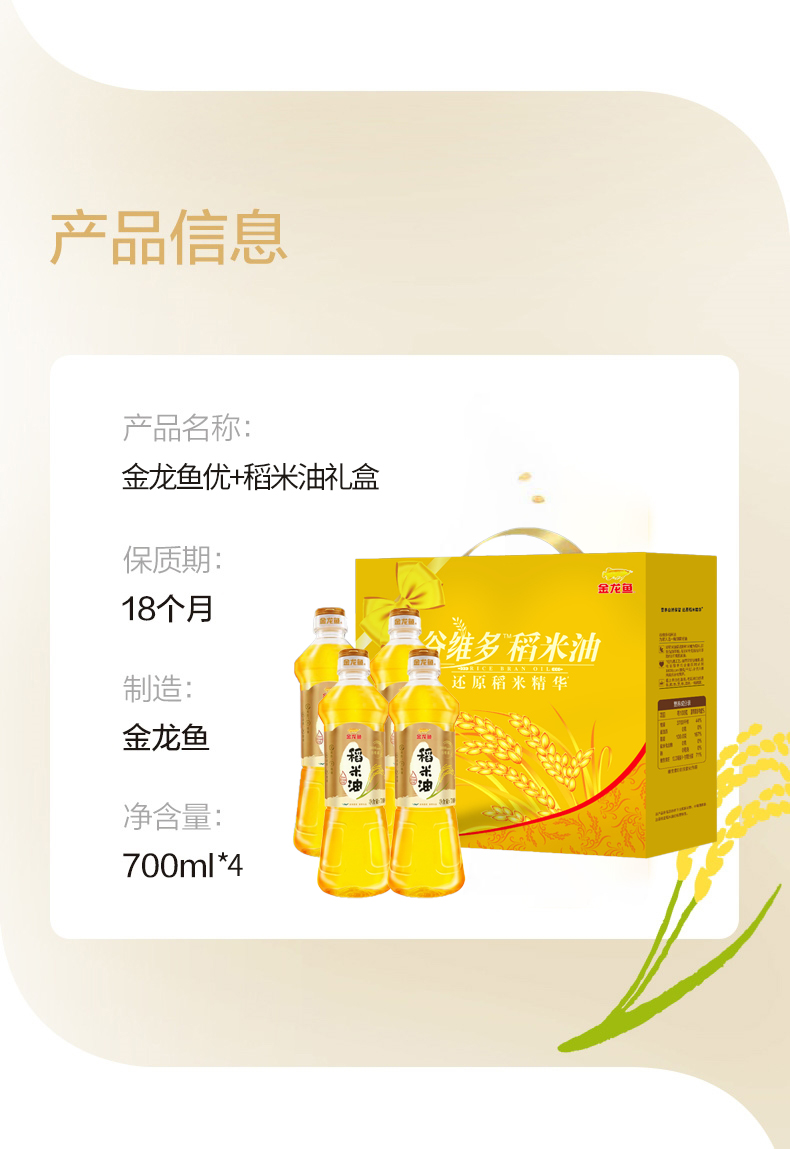 商品名称:金龙鱼优+稻米油礼盒700ml*4瓶