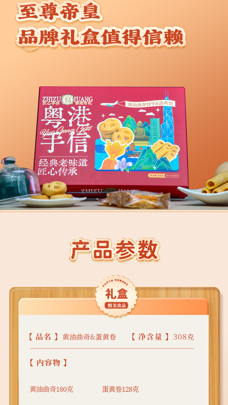 商品名称:至尊帝皇黄油曲奇&蛋黄卷礼盒308g