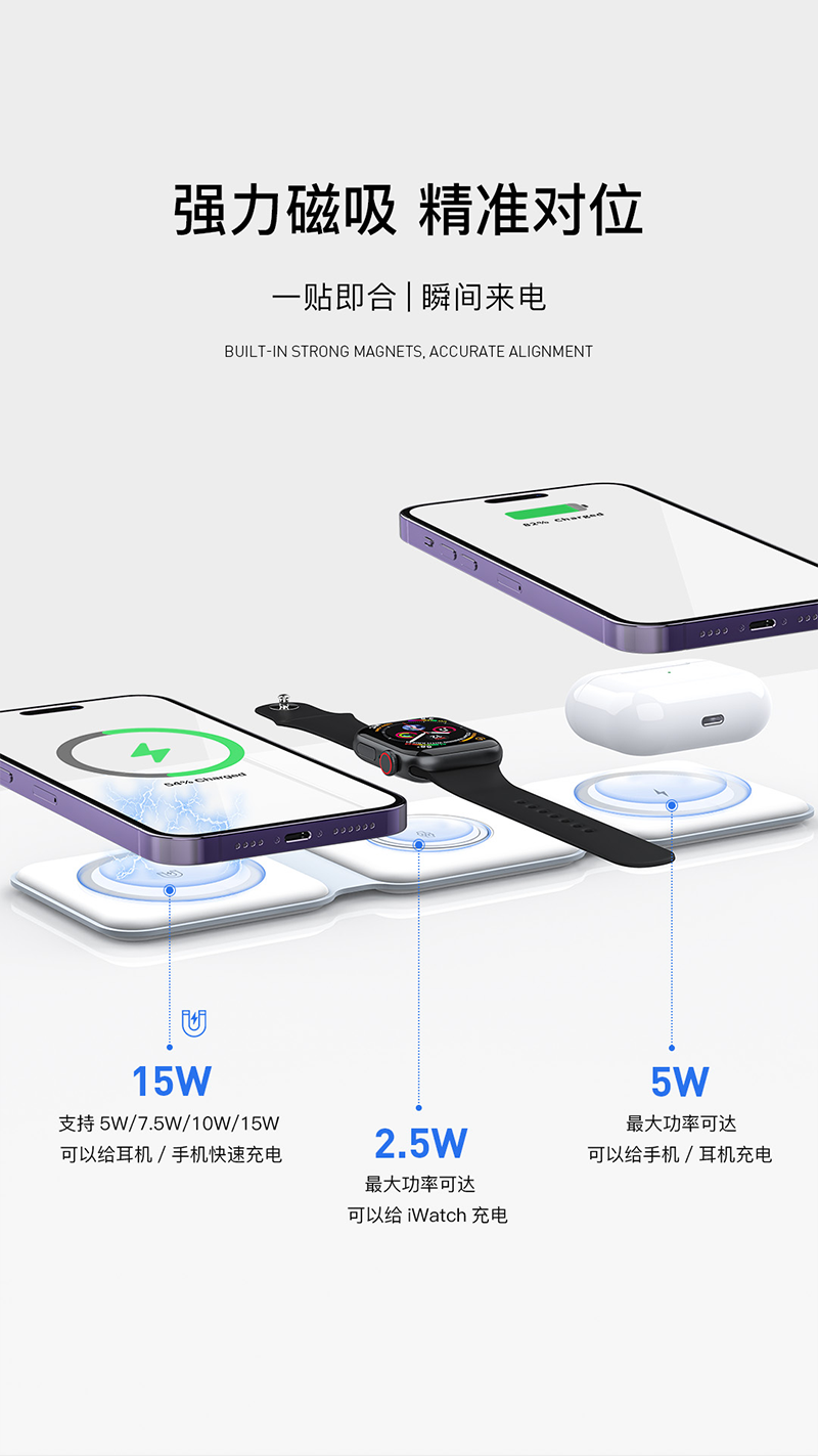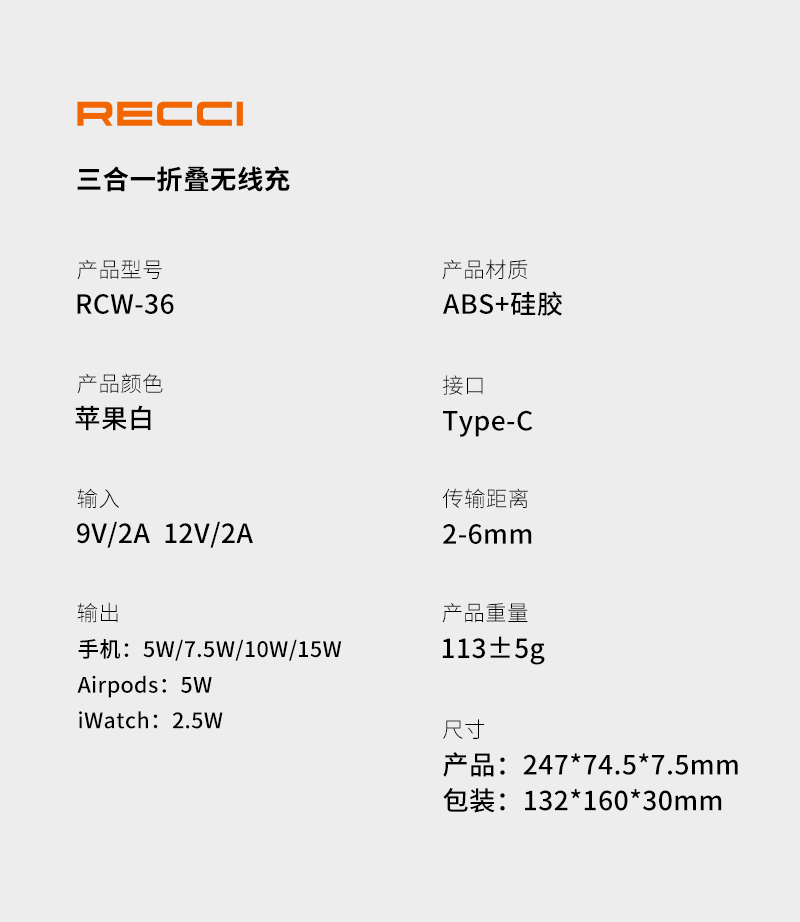 商品名称:Recci/锐思15W三合一折叠无线充RCW-36