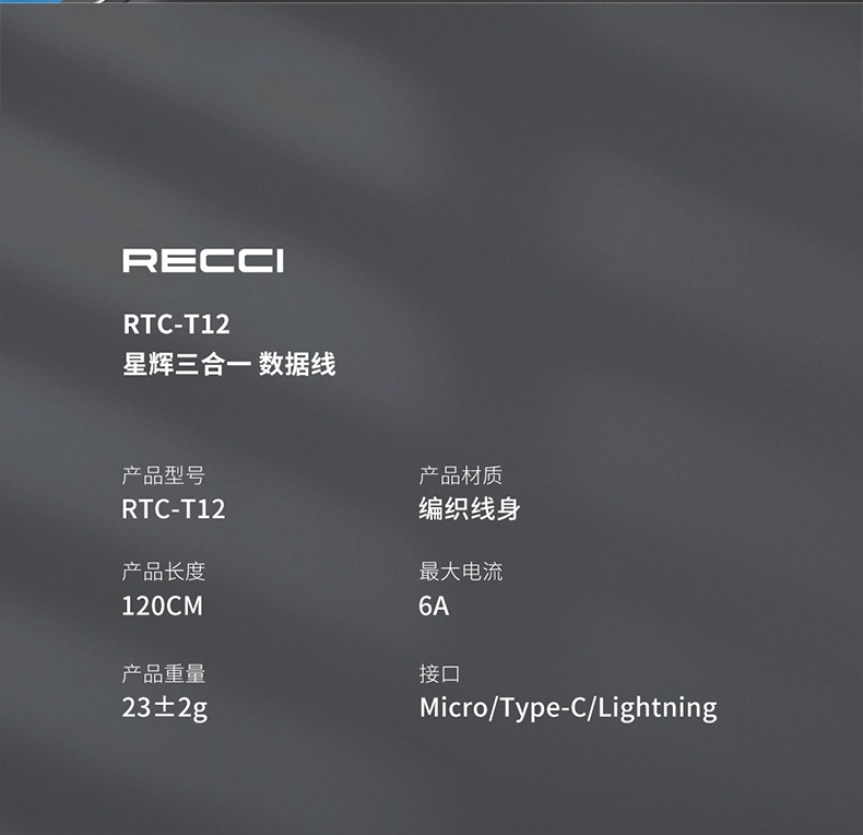 商品名称:Recci/锐思星辉三合一数据线RTC-T12