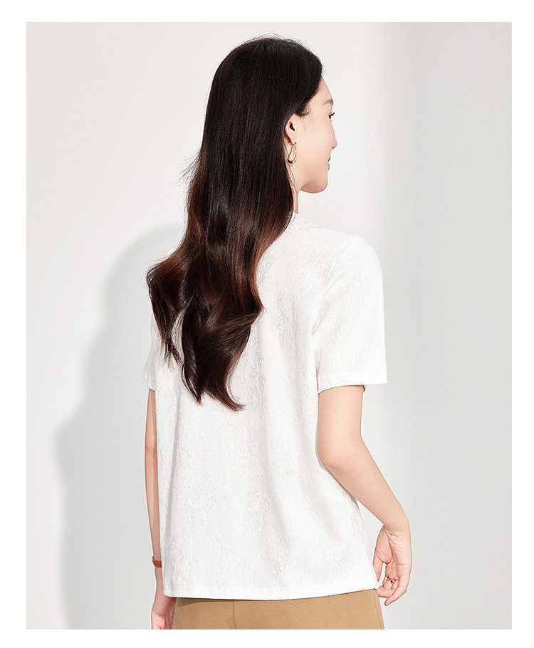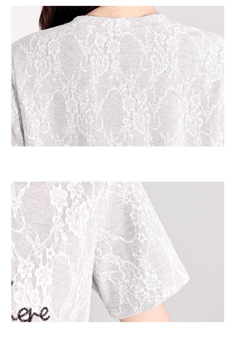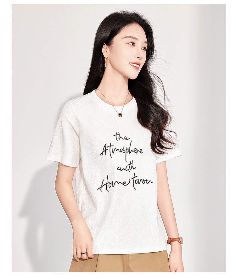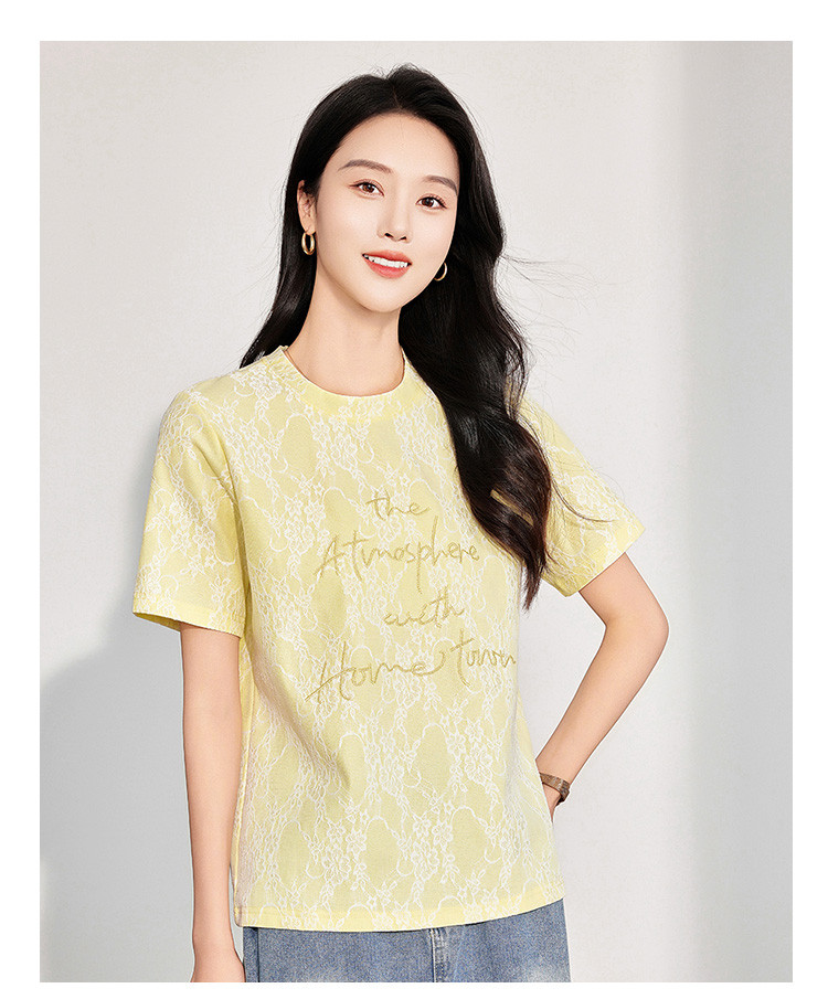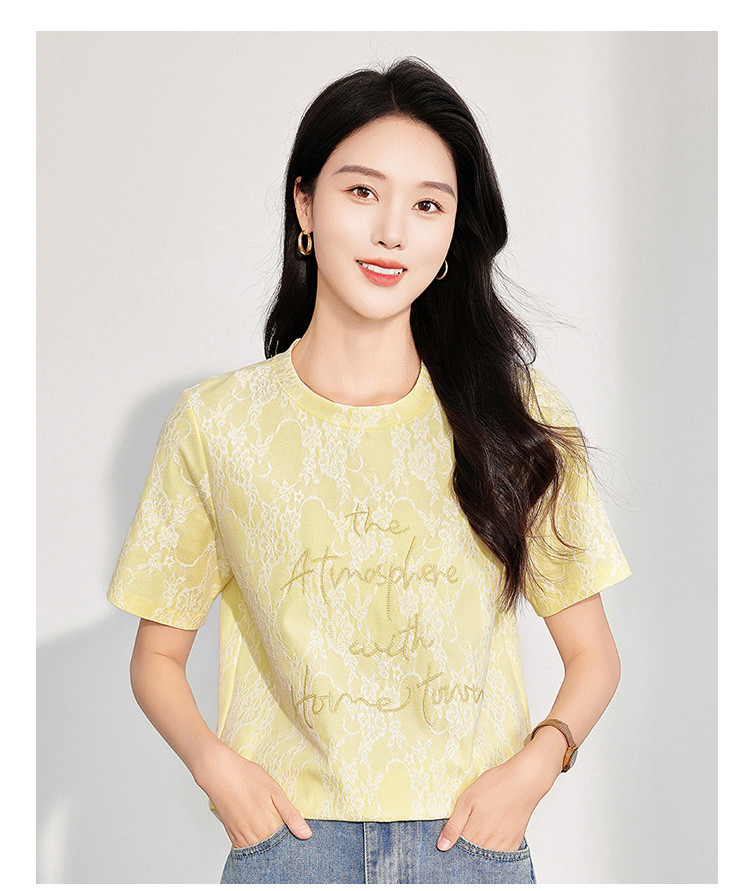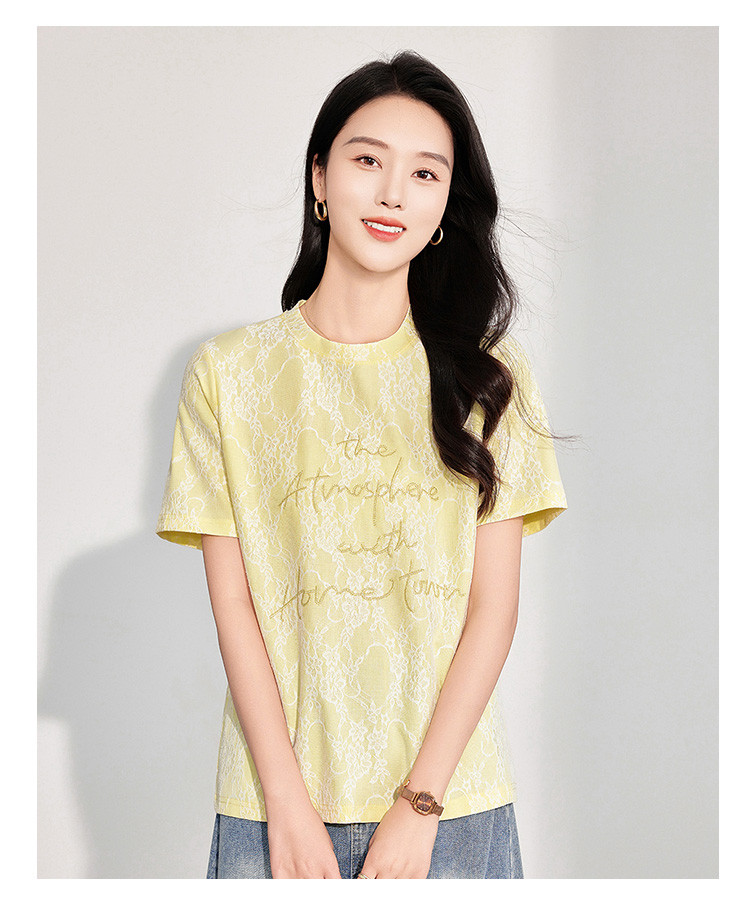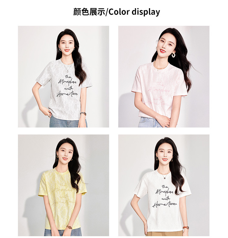 商品名称:25夏季新款韩系高级感蕾丝压纱上衣女式温柔字母刺绣短袖T恤 290463