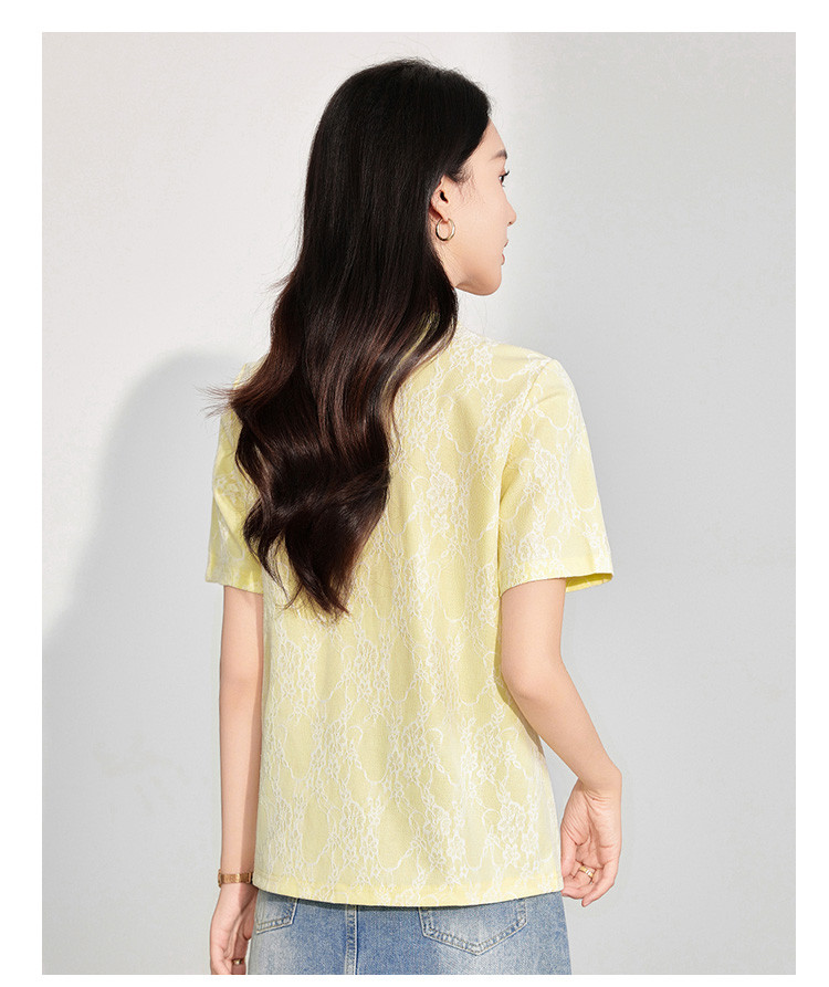 25夏季新款韩系高级感蕾丝压纱上衣女式温柔字母刺绣短袖T恤 290463