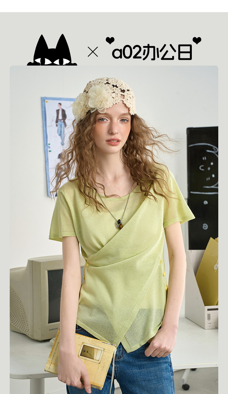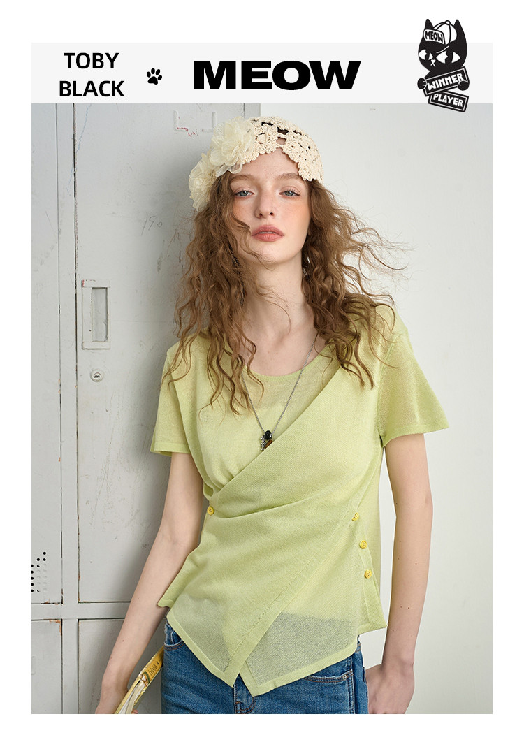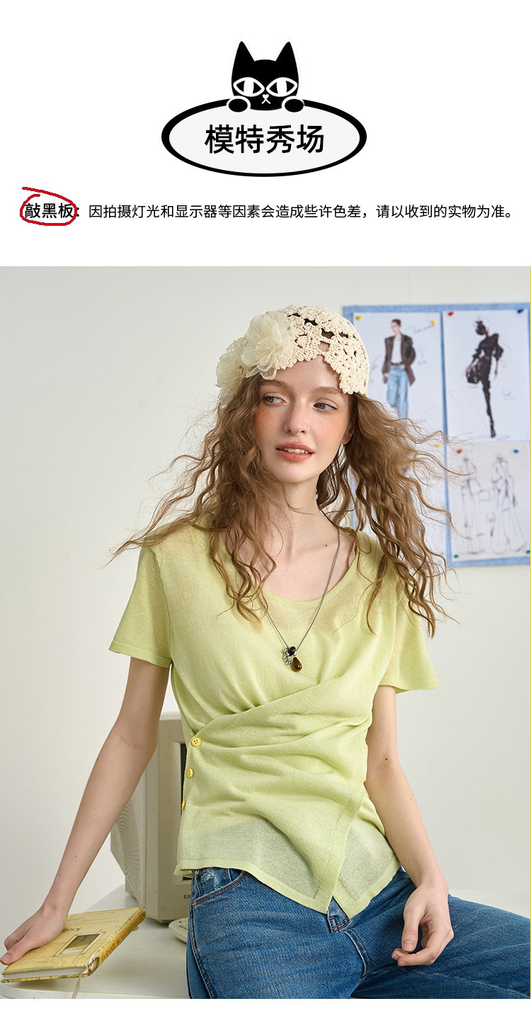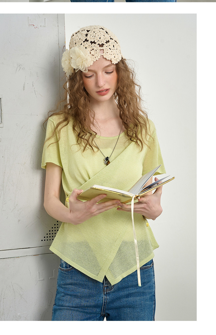 商品名称:设计感文艺圆领针织短袖上衣2025夏季百搭休闲女式针织衫 659485