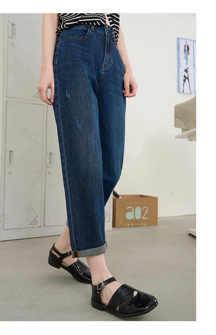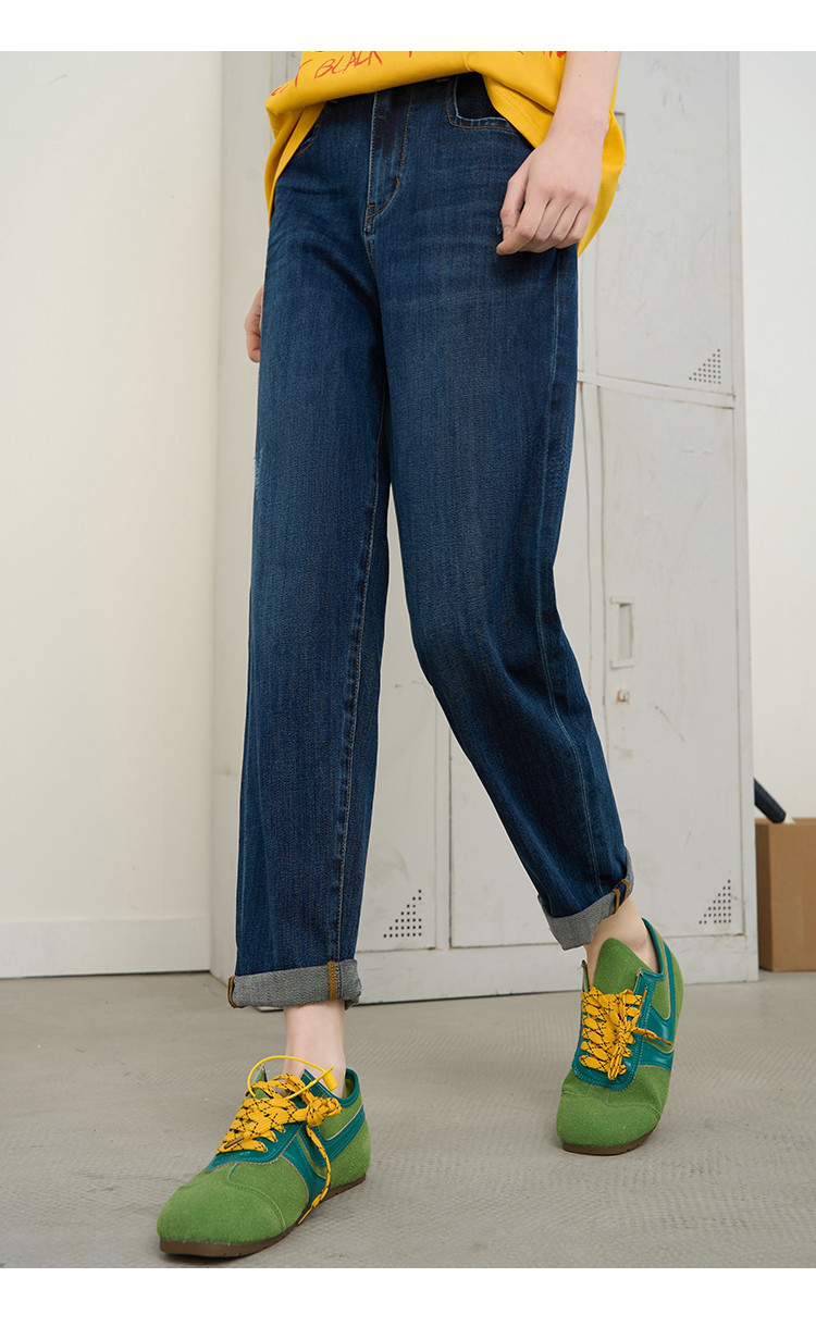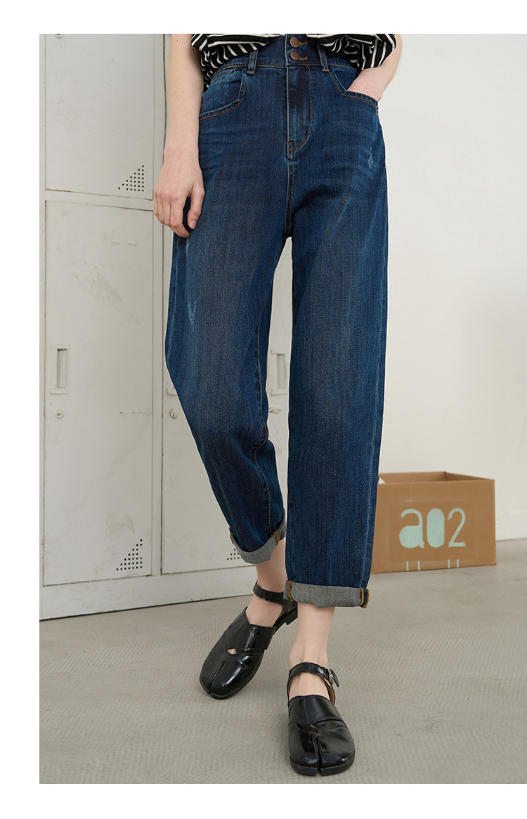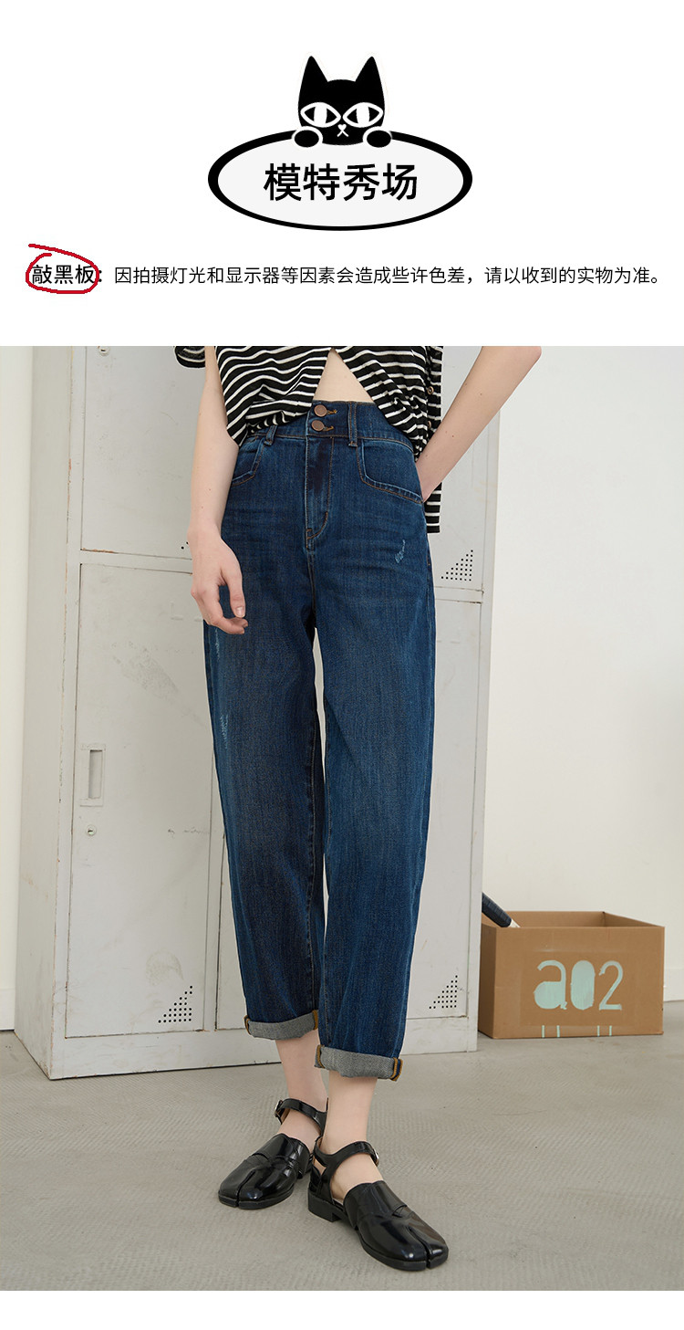 商品名称:松紧高腰牛仔宽松休闲直筒阔腿裤2025夏季百搭显瘦女式牛仔裤 465437