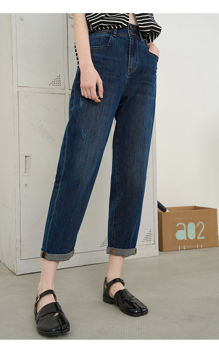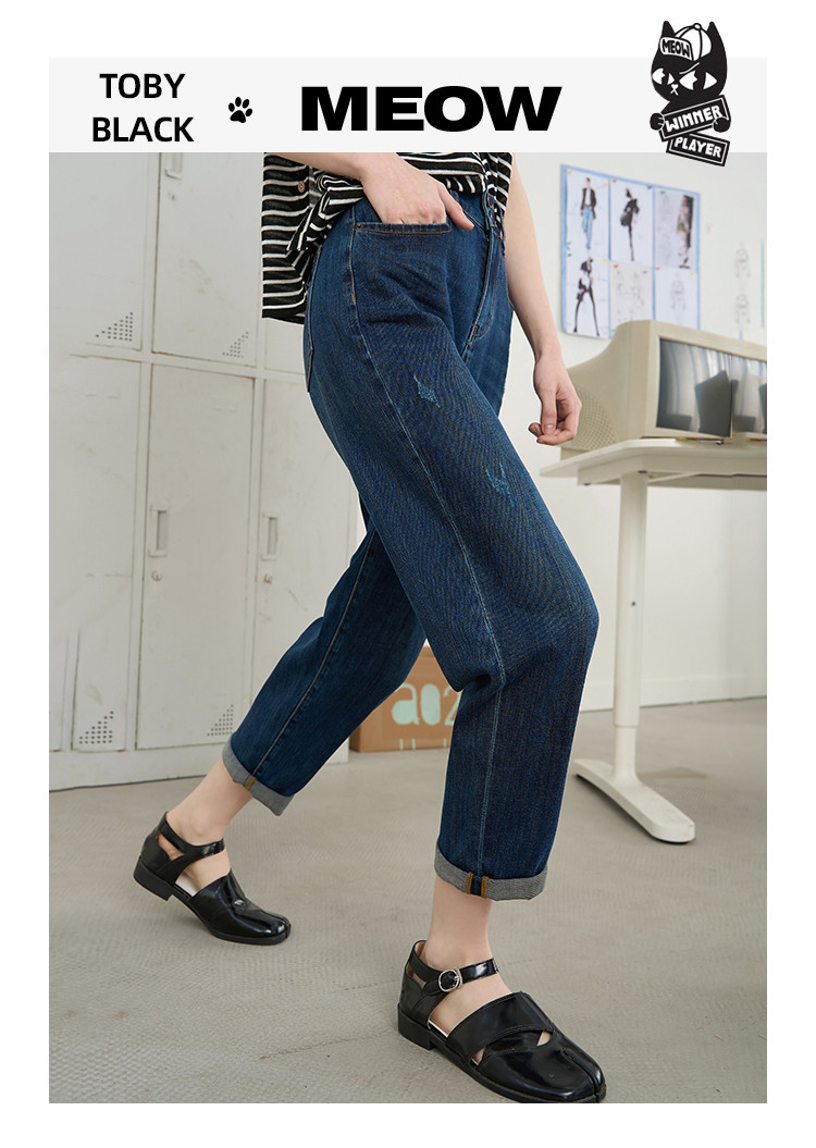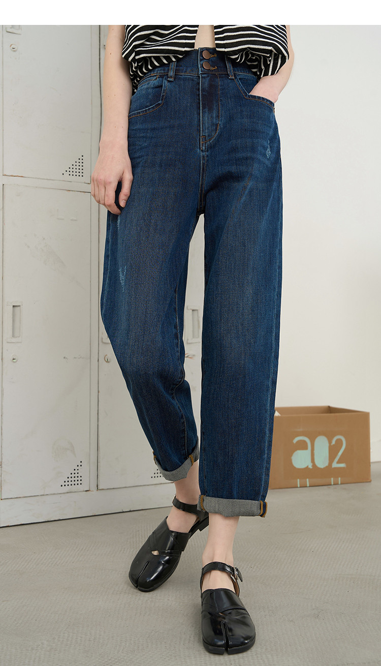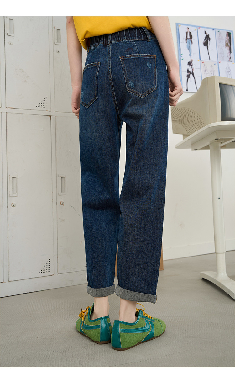 松紧高腰牛仔宽松休闲直筒阔腿裤2025夏季百搭显瘦女式牛仔裤 465437