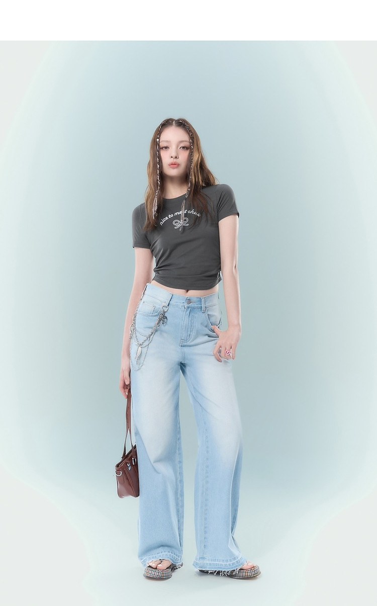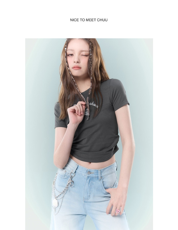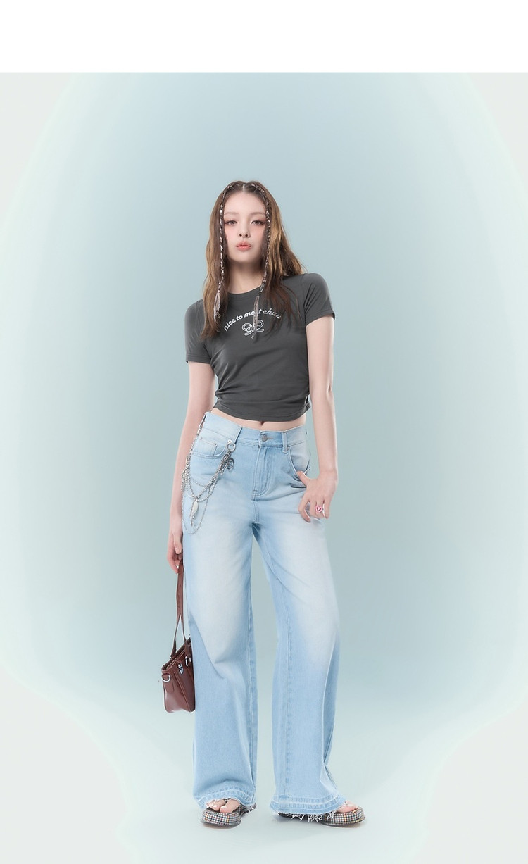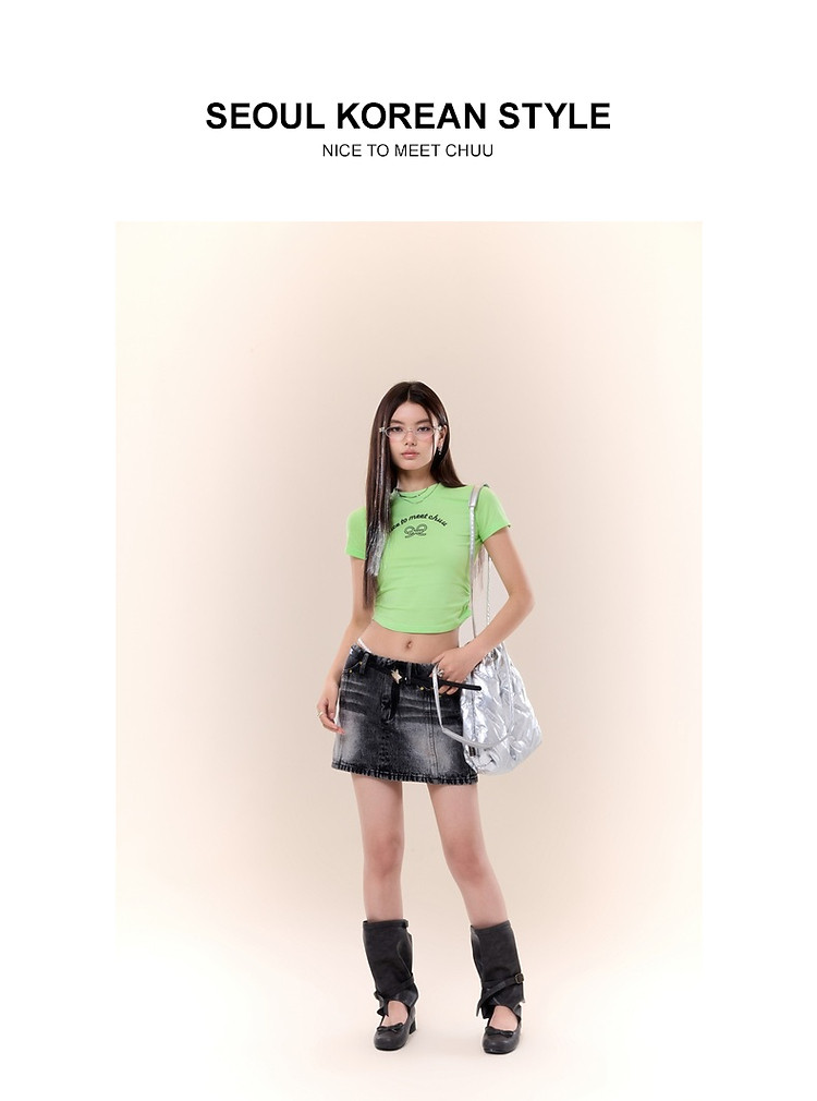 字母蝴蝶结T恤女2025夏甜美减龄设计感褶皱修身上衣 877907