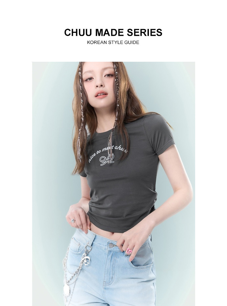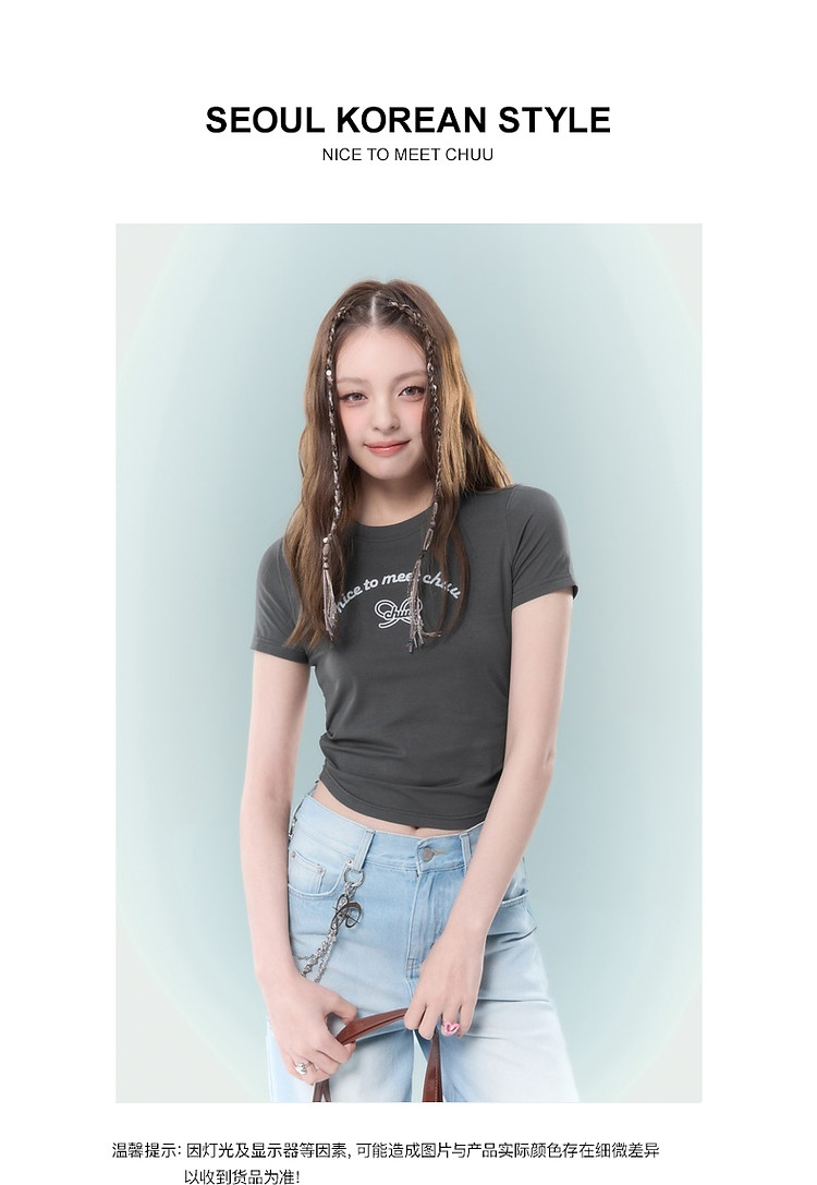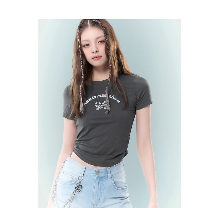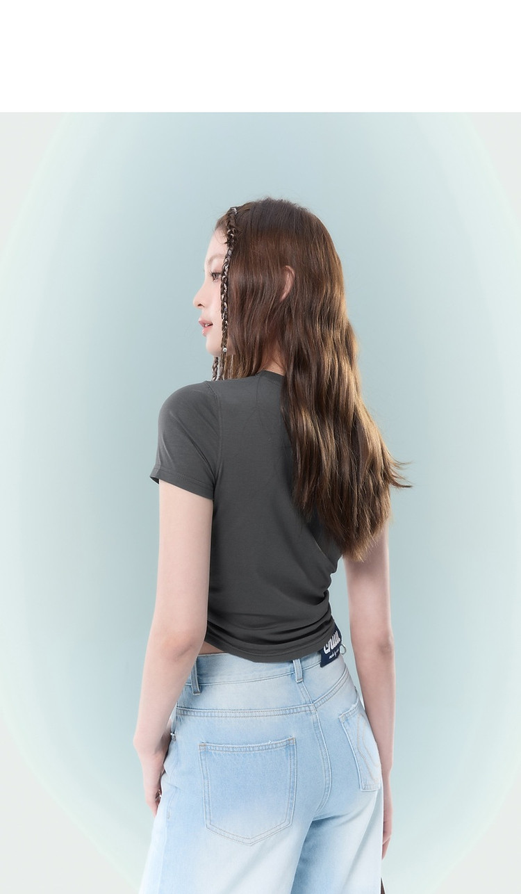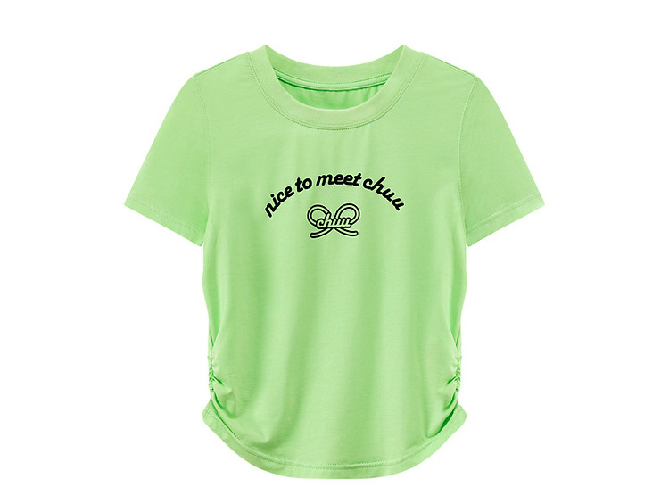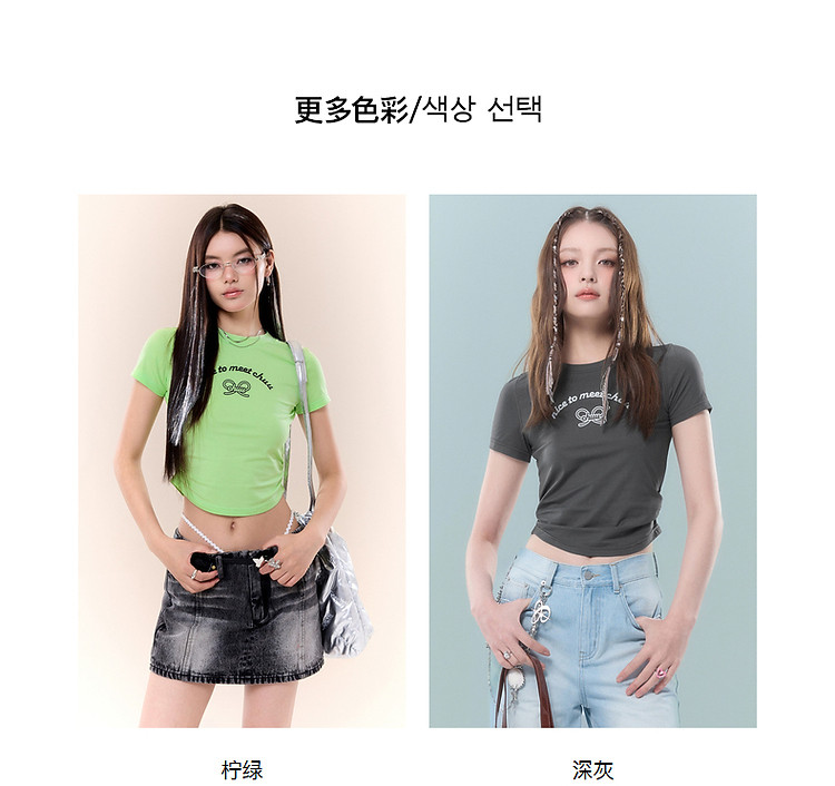 商品名称:字母蝴蝶结T恤女2025夏甜美减龄设计感褶皱修身上衣 877907