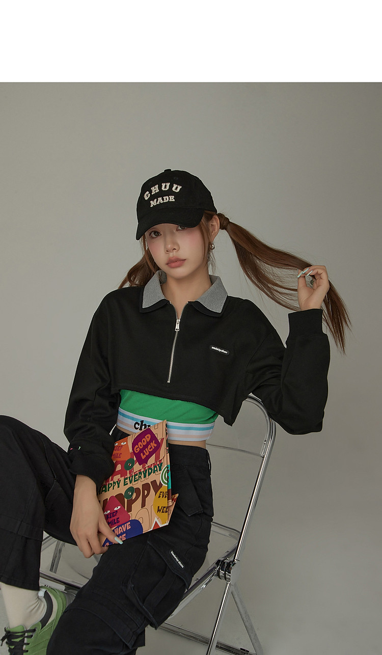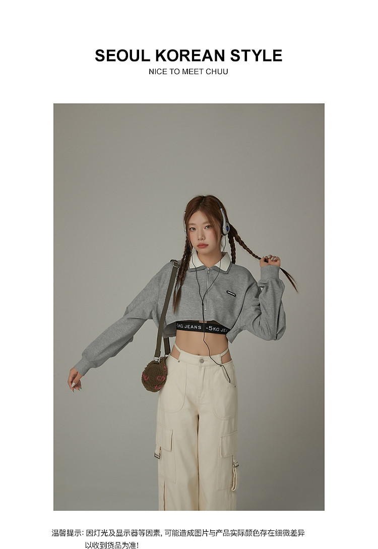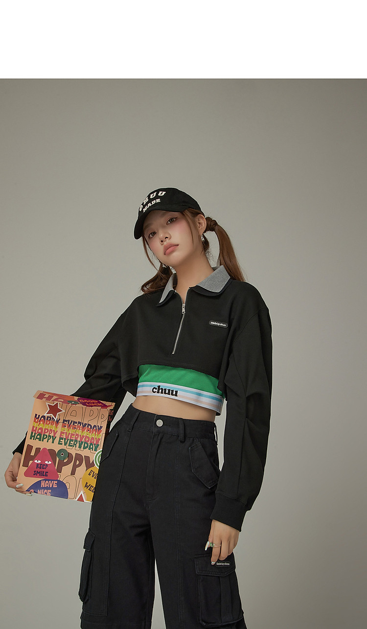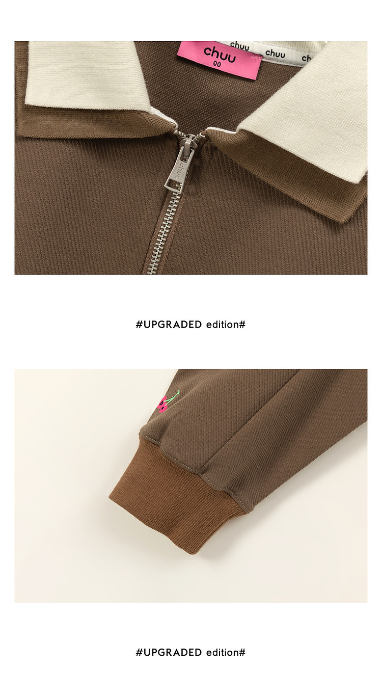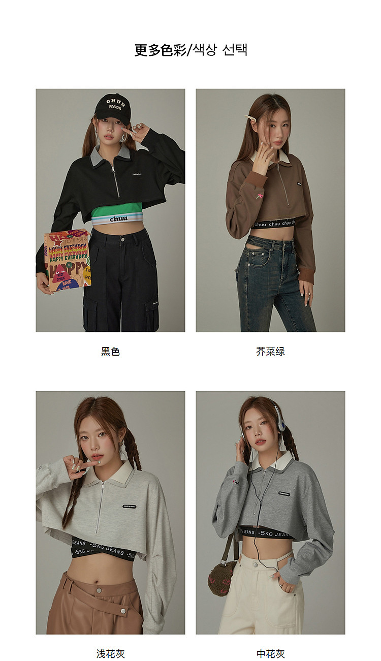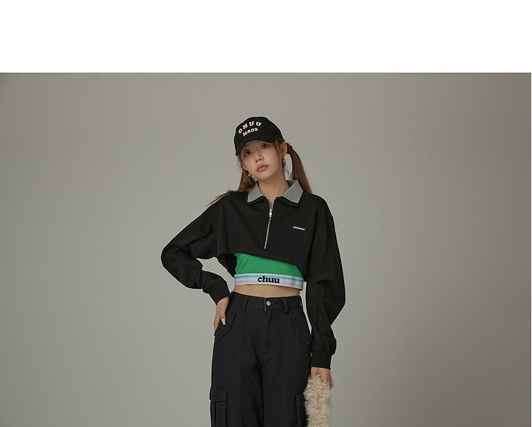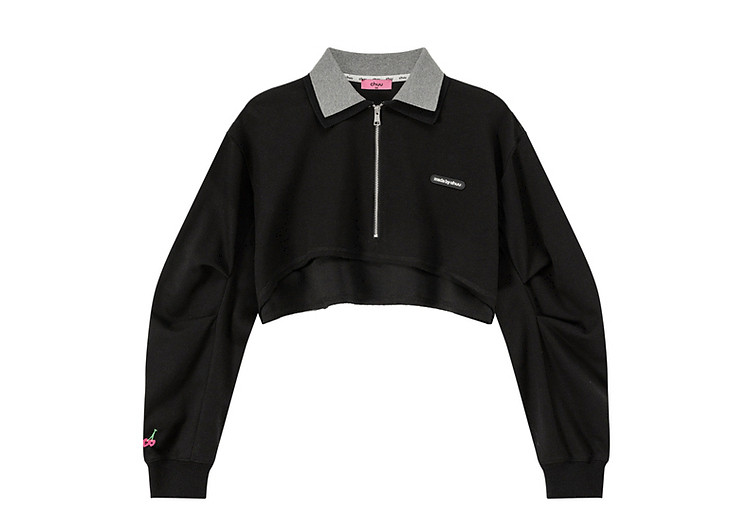 商品名称:小樱桃刺绣卫衣女2025春撞色拼接双层领短款上衣 653779