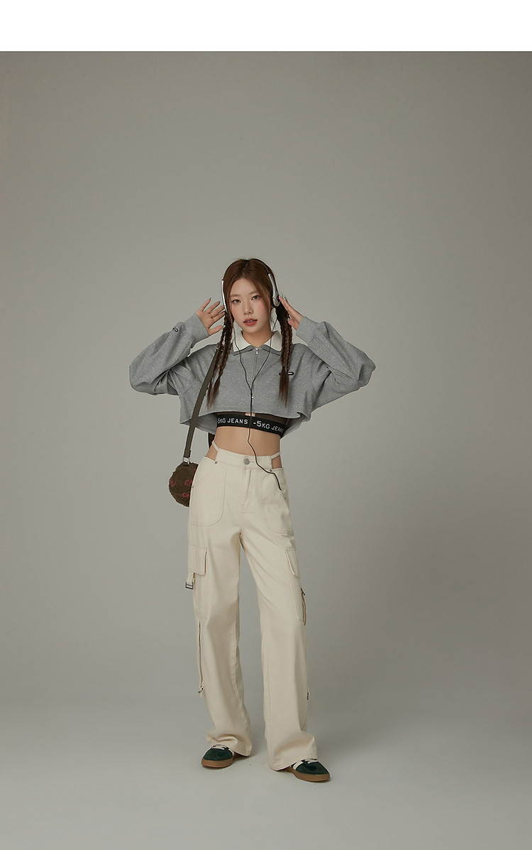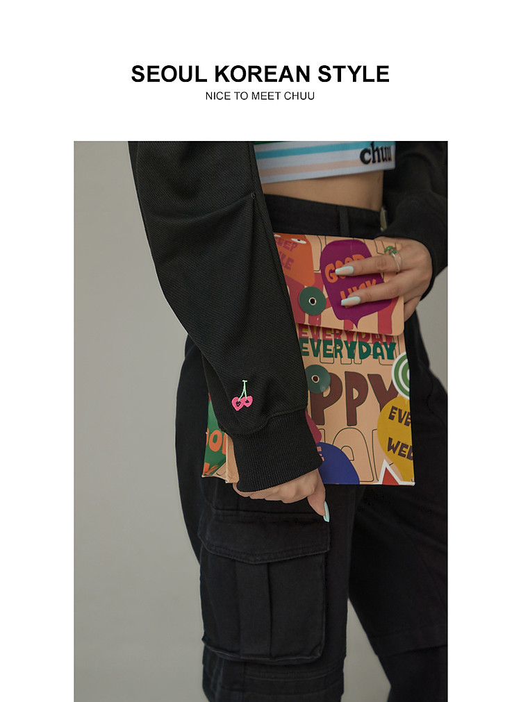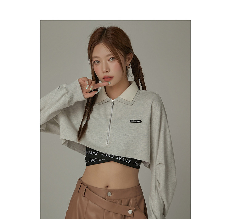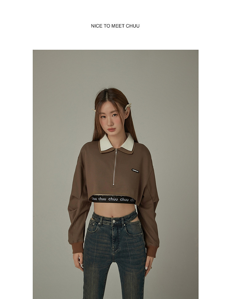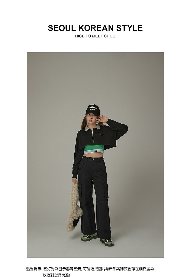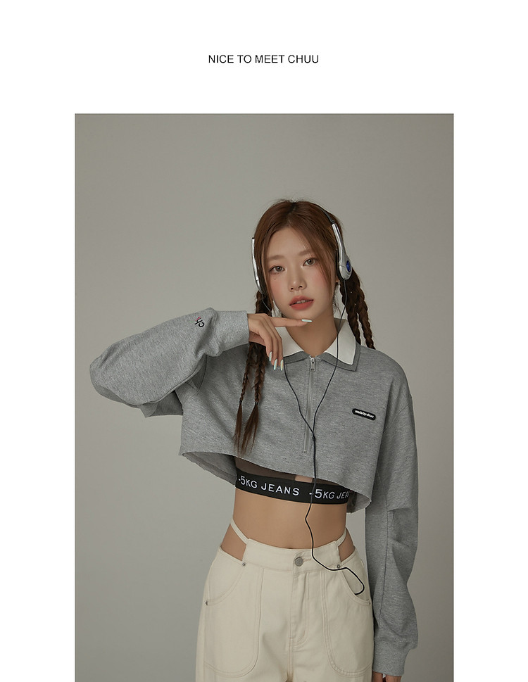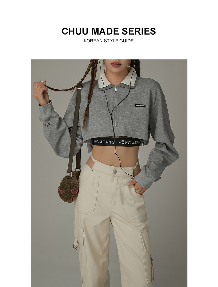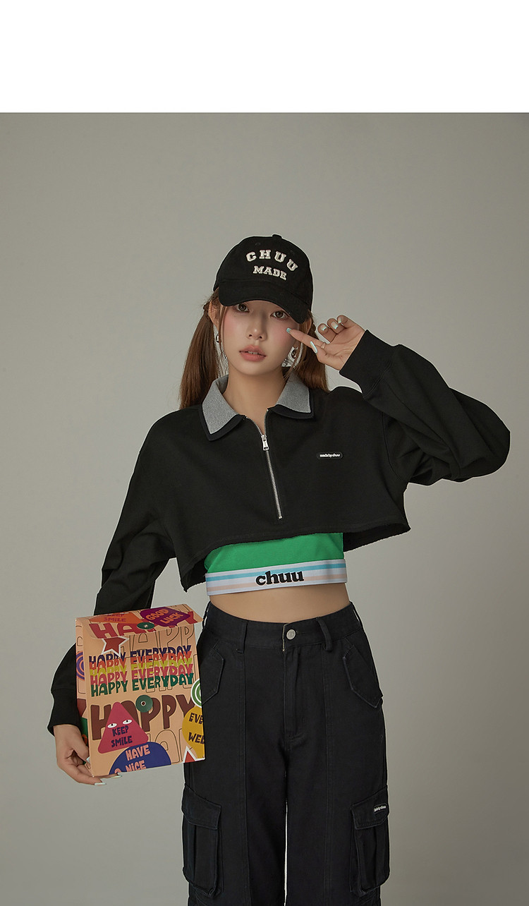 商品名称:小樱桃刺绣卫衣女2025春撞色拼接双层领短款上衣 653779