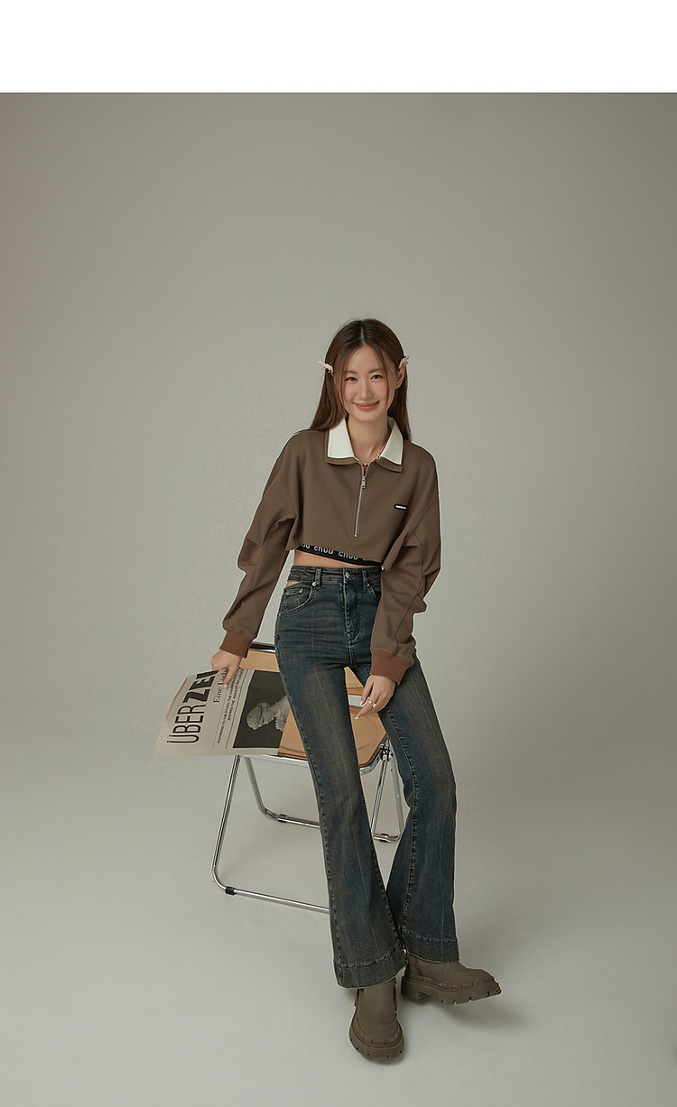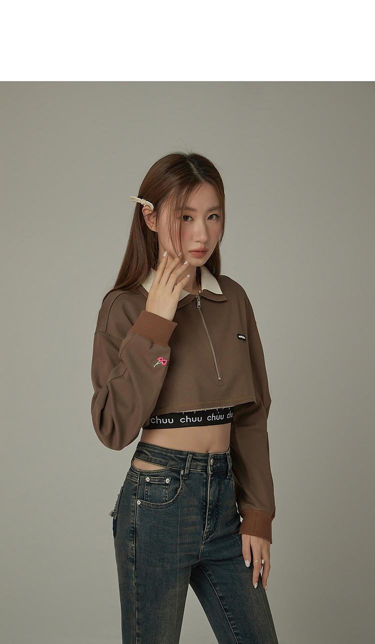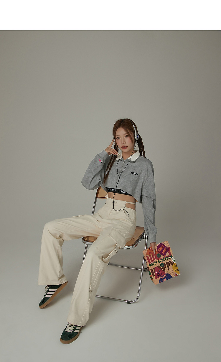 小樱桃刺绣卫衣女2025春撞色拼接双层领短款上衣 653779