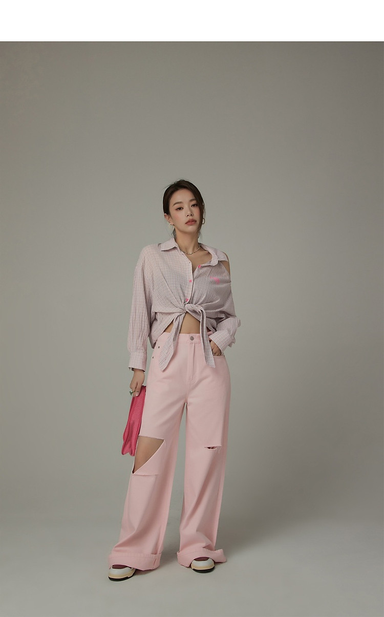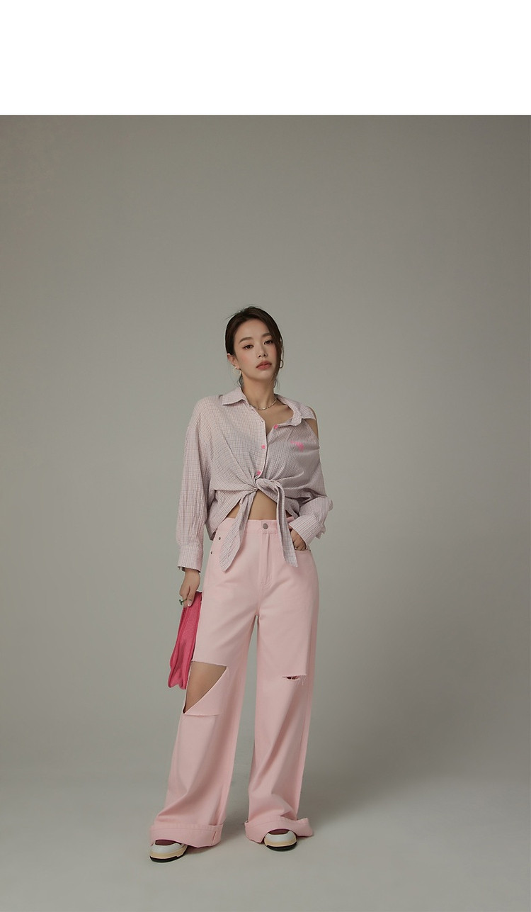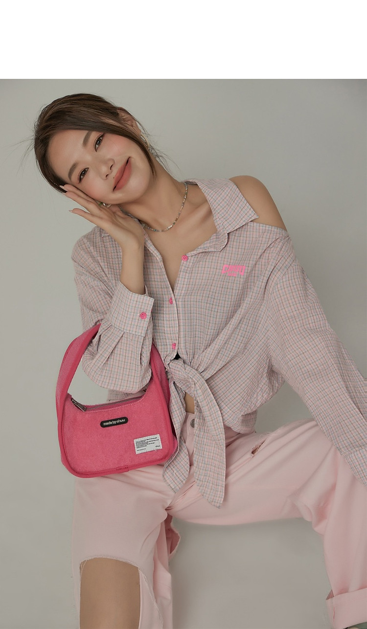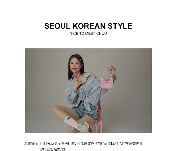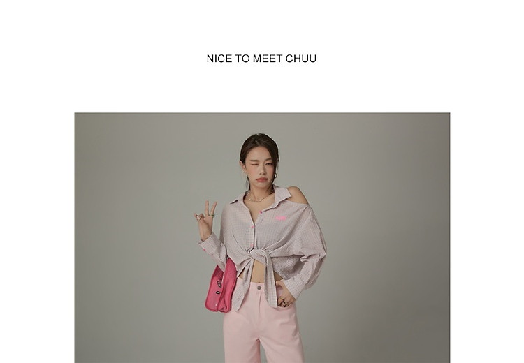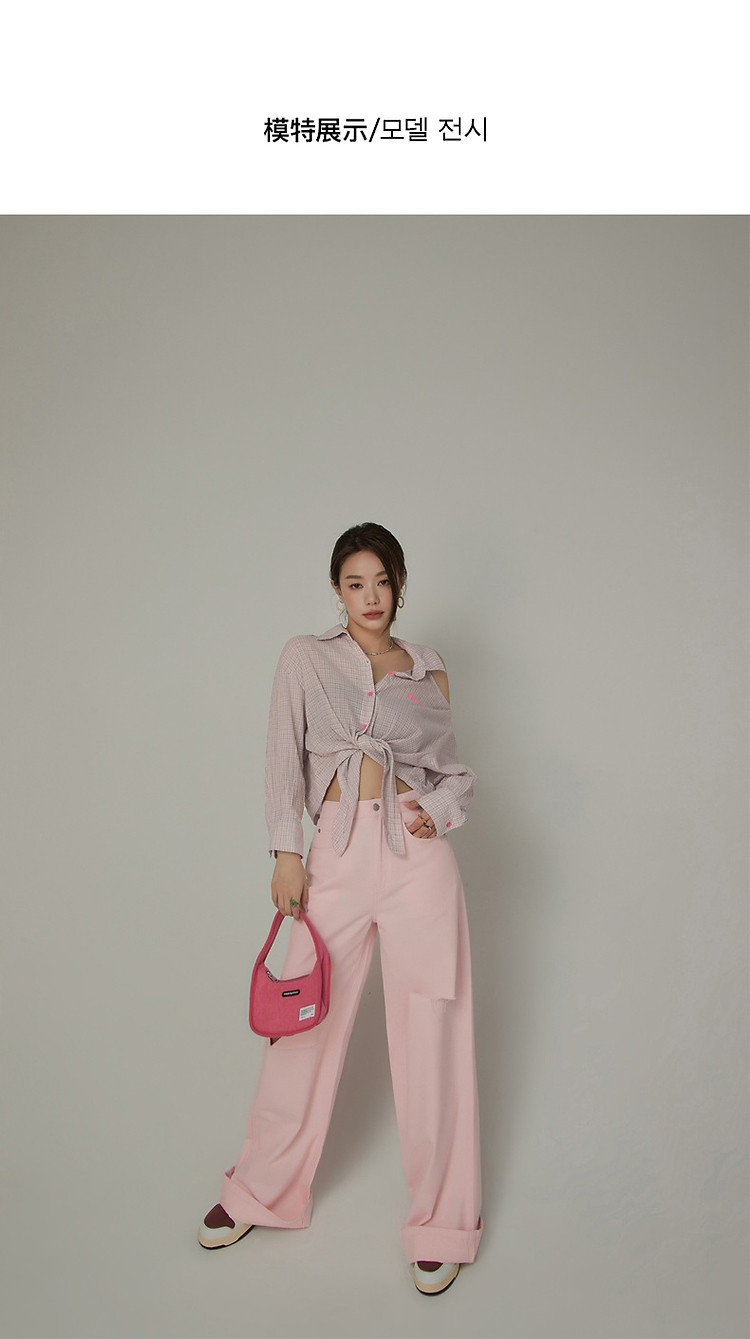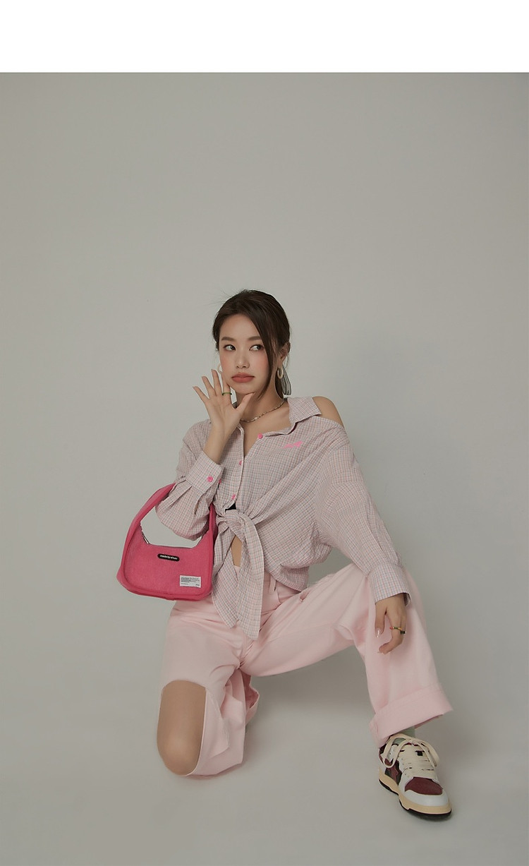 商品名称:格子露肩衬衫女士夏字母系带不规则长袖开衫上衣 062291