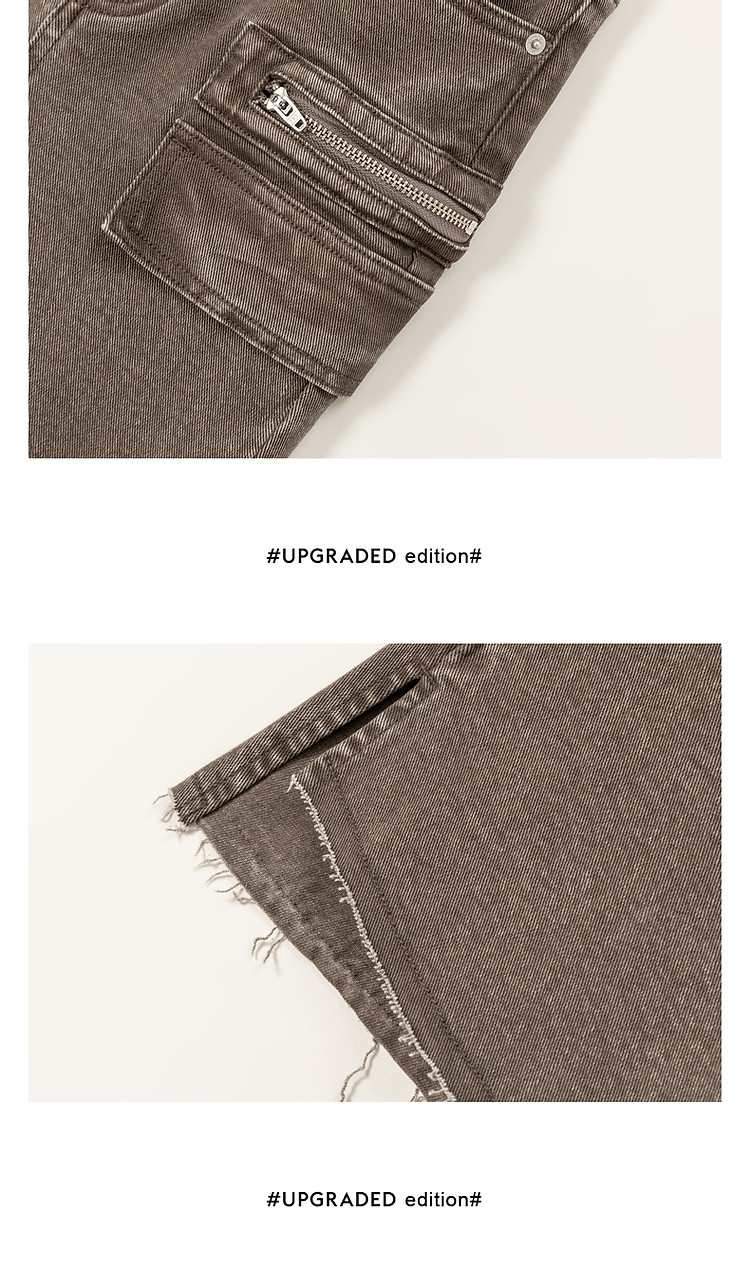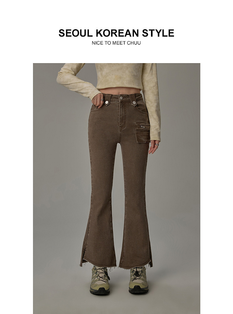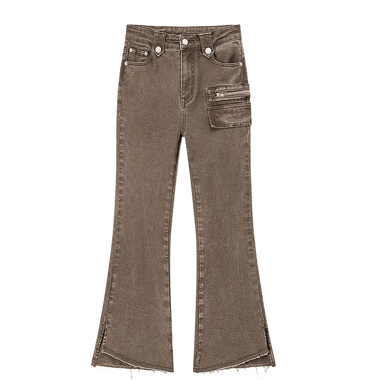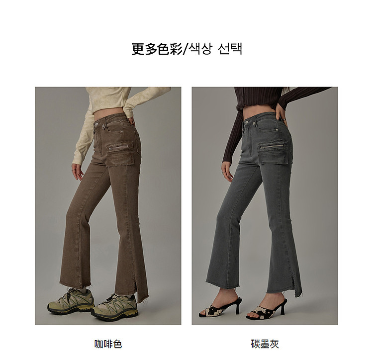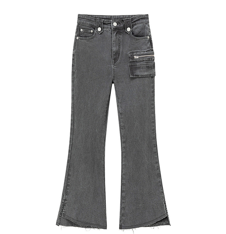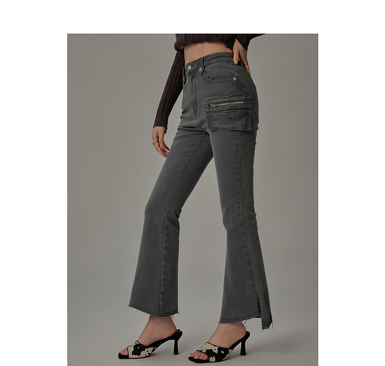商品名称:开叉微喇牛仔裤女2025夏毛边不对称口袋修身九分裤子 515923